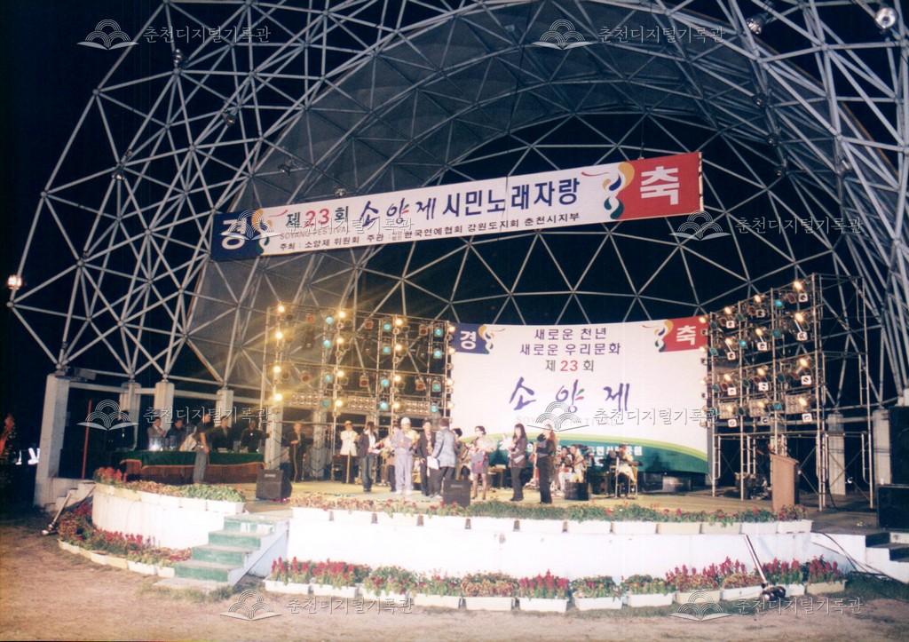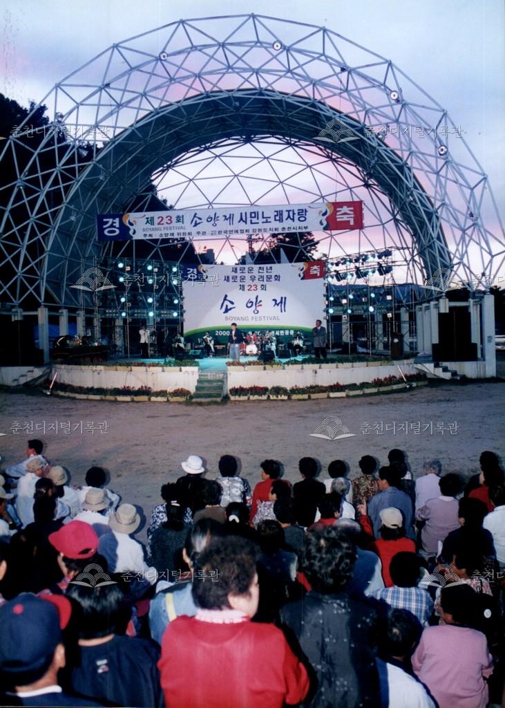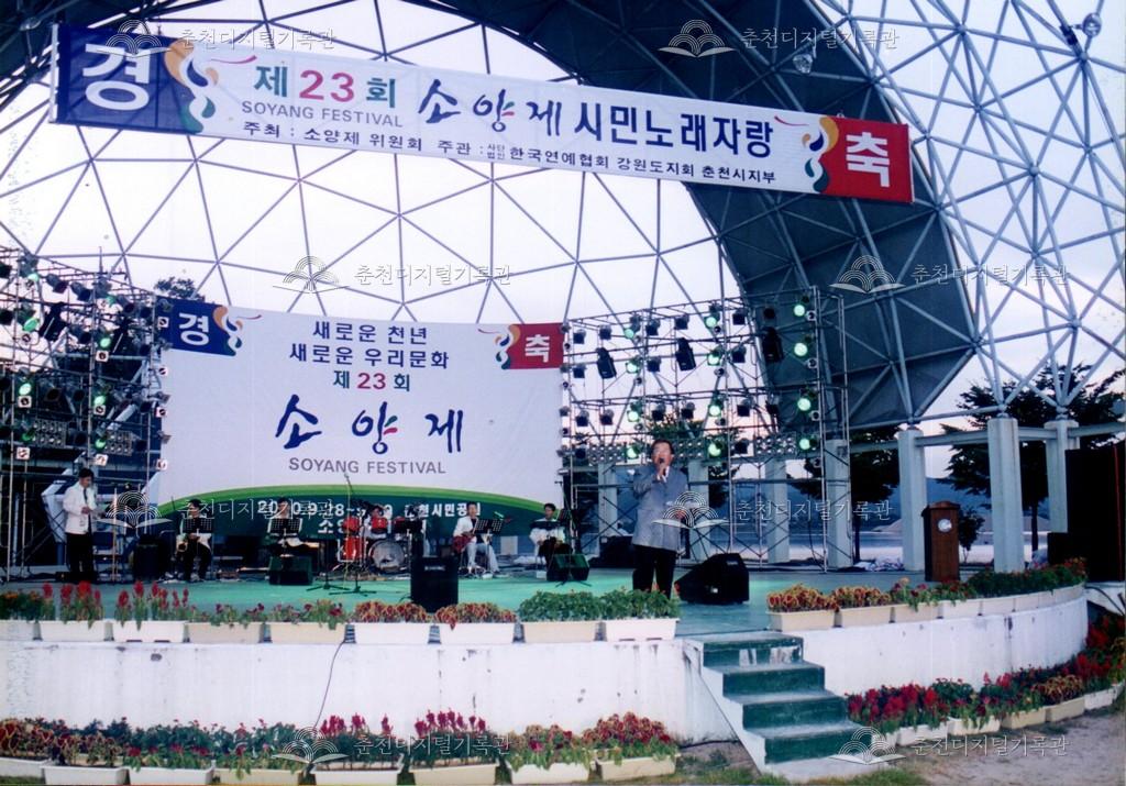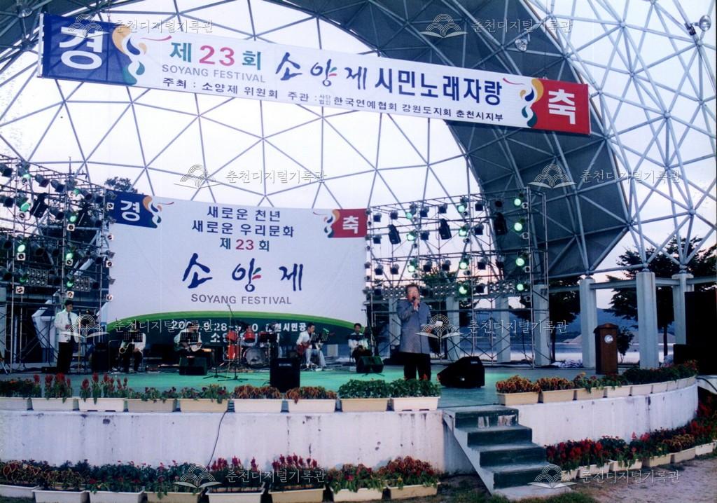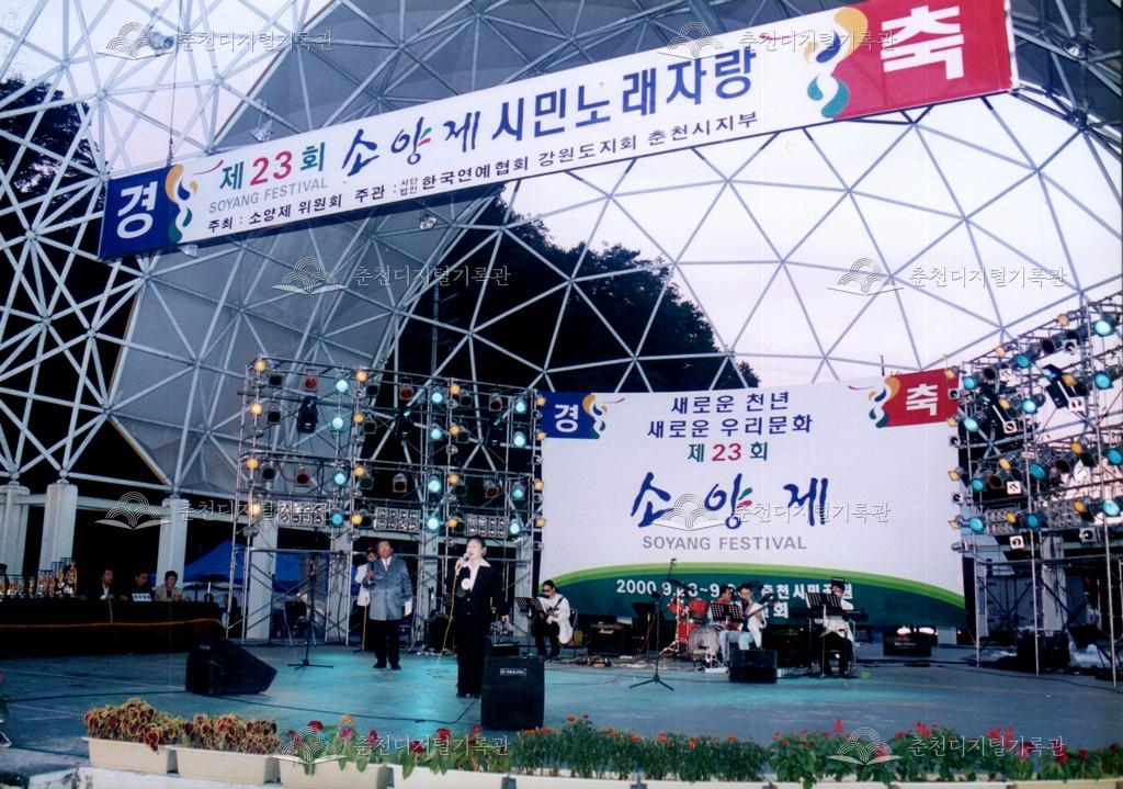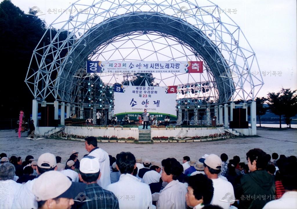 2000년 제23회 소양제(현재 소양강문화제)의 시민노래자랑 사진이다. 방송인 이용식의 진행으로 공지천 시민공원(현재 의암공원) 야외무대에서 참가자의 무대와 초청공연을 선보였다.