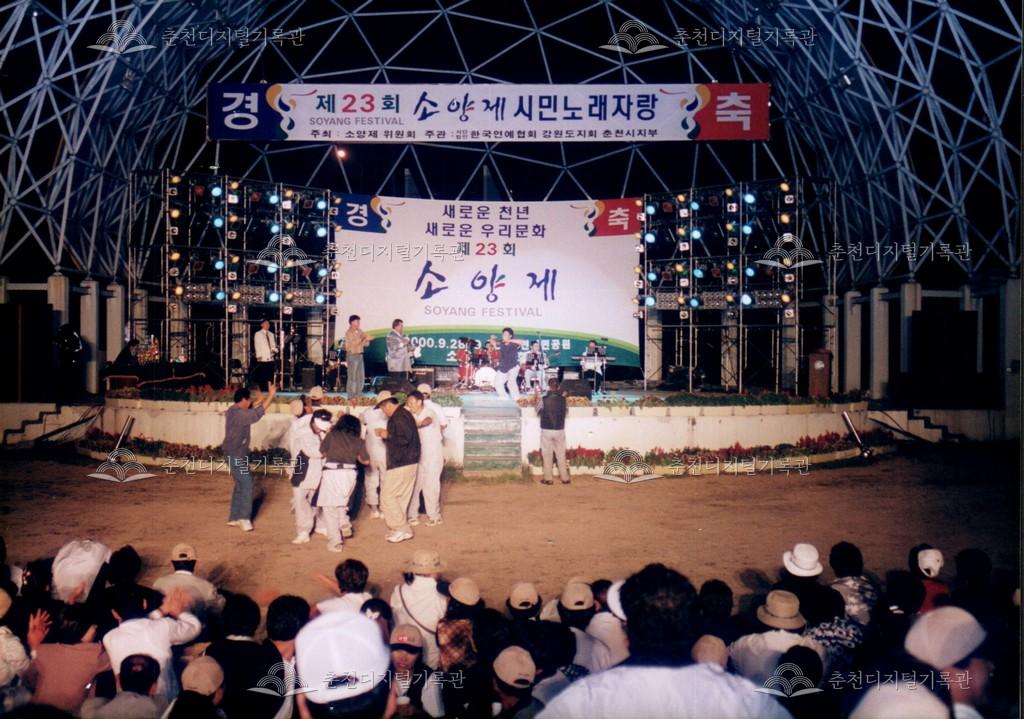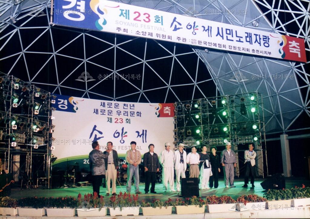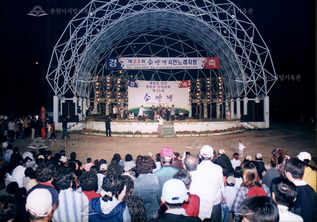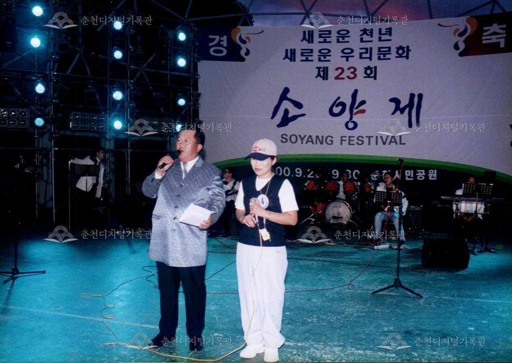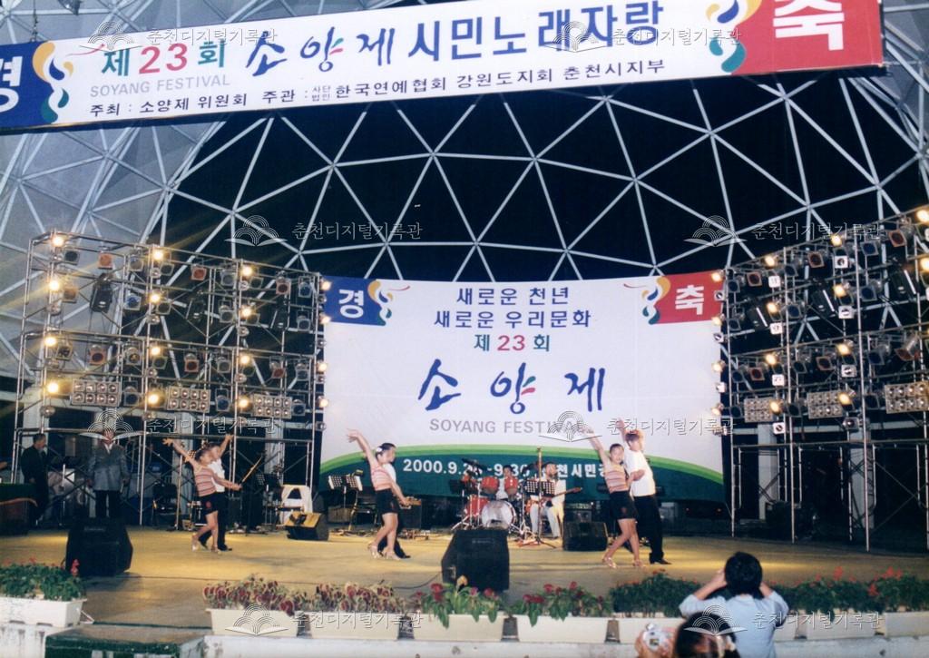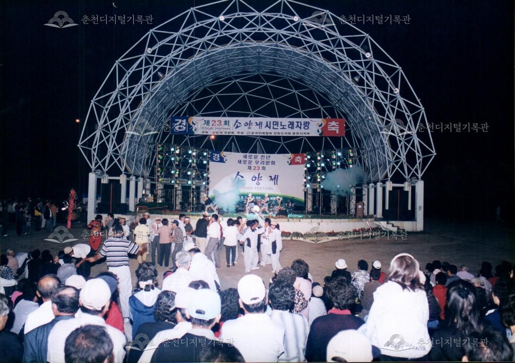 2000년 제23회 소양제(현재 소양강문화제)의 시민노래자랑 사진이다. 방송인 이용식의 진행으로 공지천 시민공원(현재 의암공원) 야외무대에서 참가자의 무대와 초청공연을 선보였다.