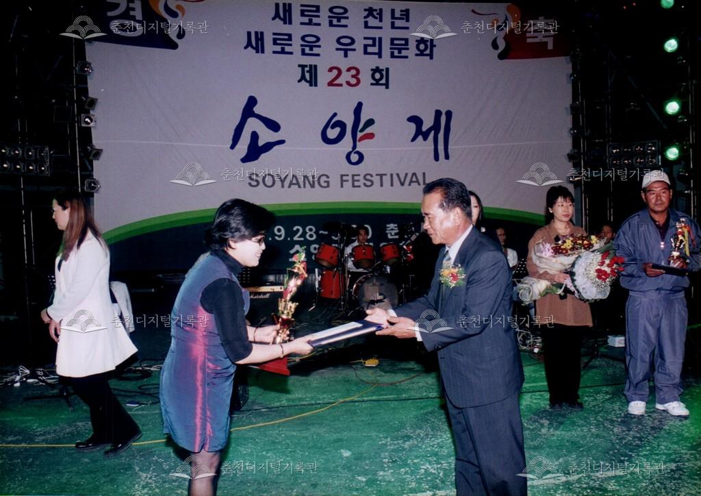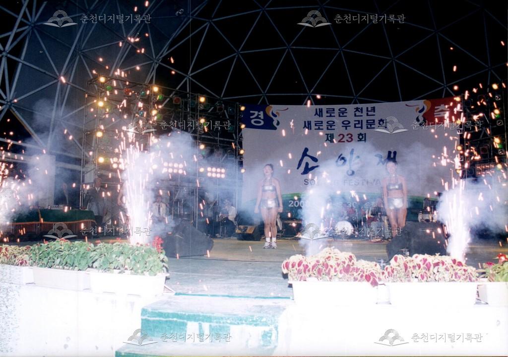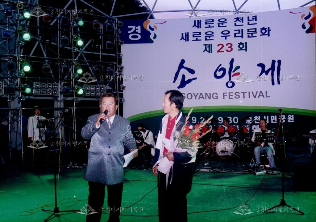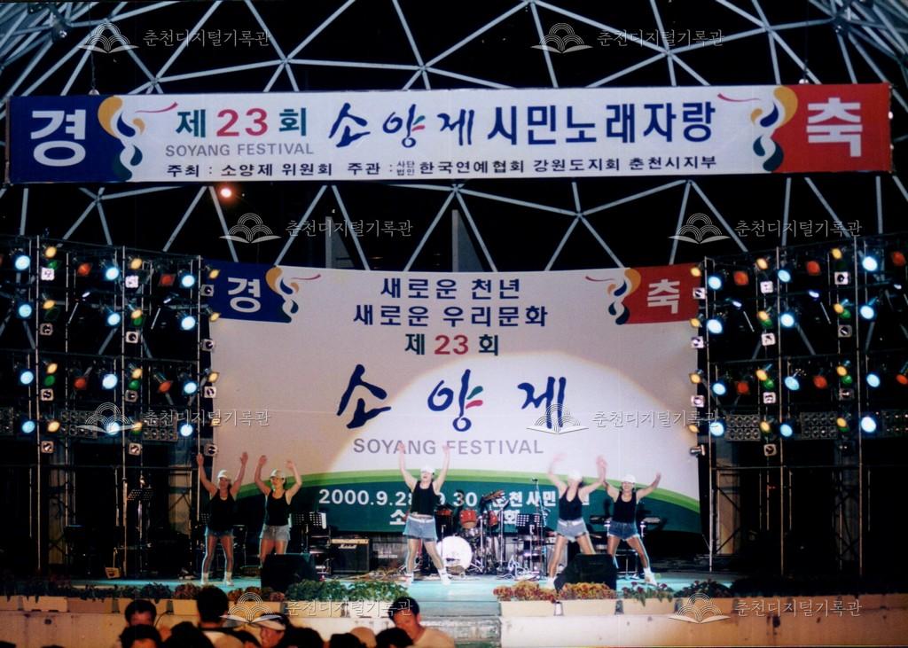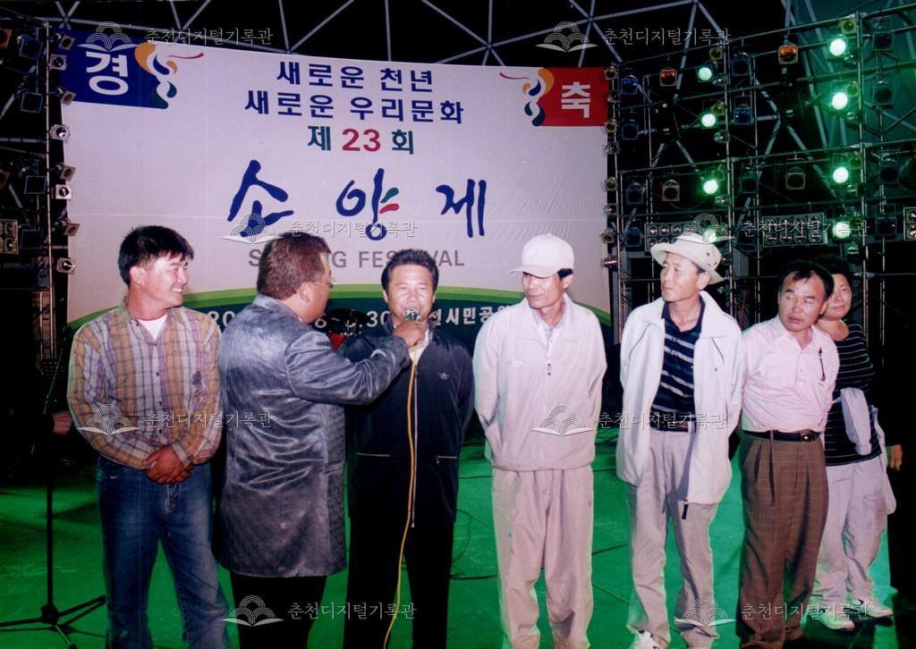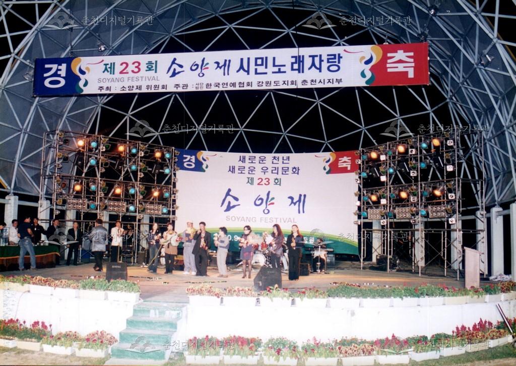 2000년 제23회 소양제(현재 소양강문화제)의 시민노래자랑 사진이다. 방송인 이용식의 진행으로 공지천 시민공원(현재 의암공원) 야외무대에서 참가자의 무대와 초청공연을 선보였다.