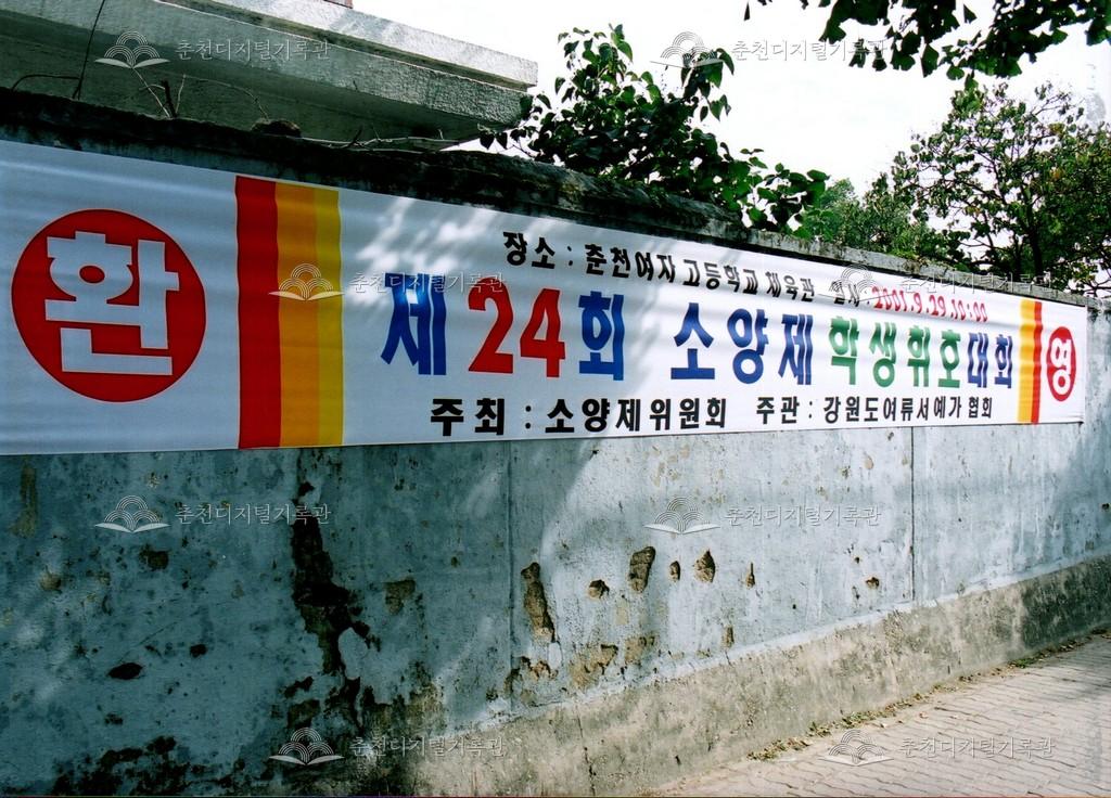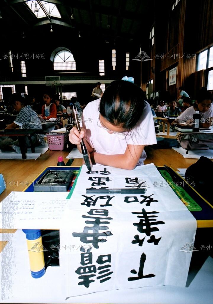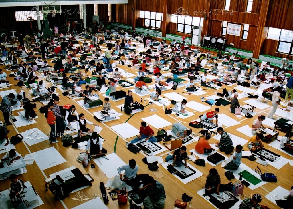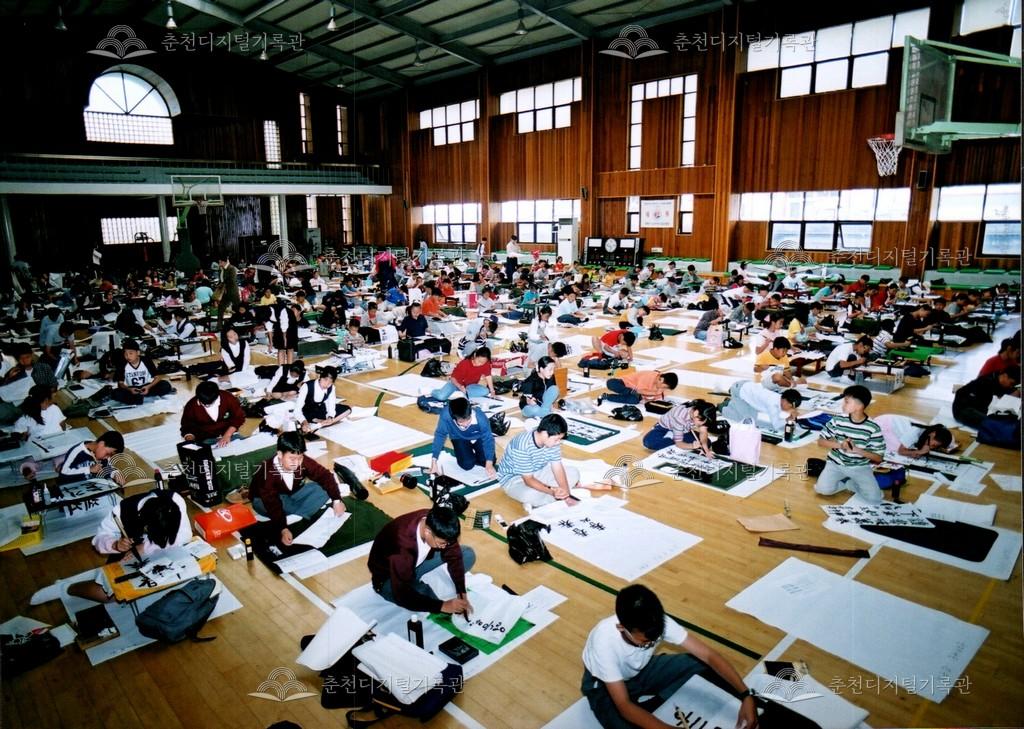 2001년 제24회 소양제(현재 소양강문화제)의 학생 휘호 대회 사진이다. 교동 춘천여자고등학교 체육관에서 진행되었다.