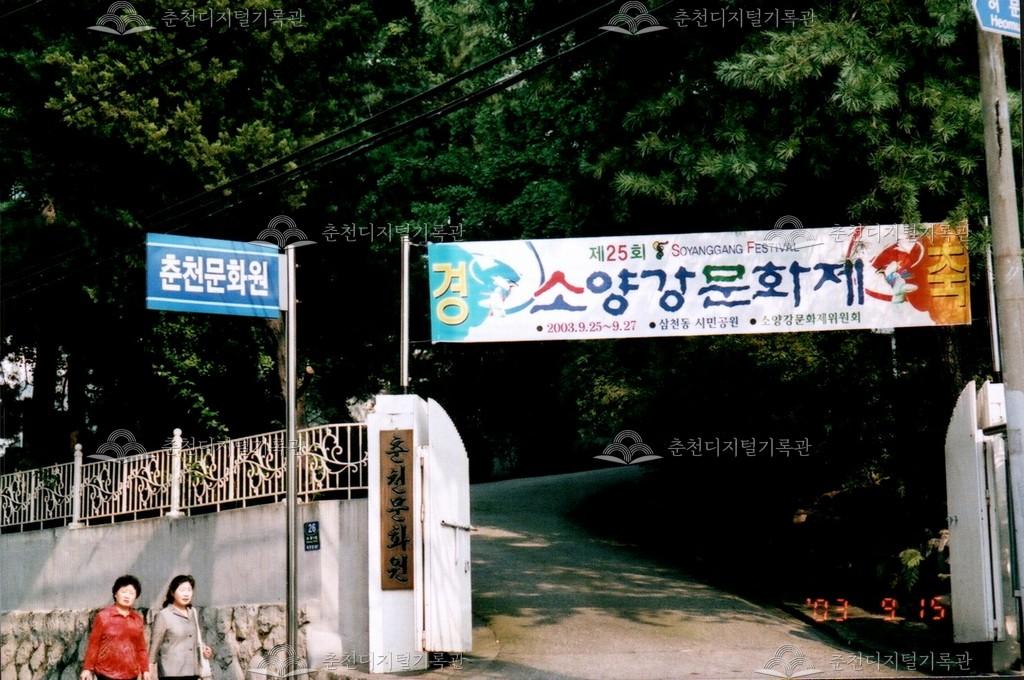 2003년 제25회 소양강문화제의 현수막 사진이다. 9월 25일부터 29일까지 삼천동 시민공원(현재 의암공원)에서 개최되었다. 2003년 5월 27일, 소양제 개선 열린토론회를 통해 소양제의 명칭이 소양강문화제로 변경되었다. 소양제는 춘천의 향토성을 대표하는 축제이지만 급변하는 사회환경에 대한 역사문화적 가치와 주민 참여에 대한 개선 필요성이 제기되었다. 이에 토론회를 거쳐 문화 축제의 의미를 부여한 소양강문화제로 개칭, 시민 참여를 위한 프로그램을 확장하는 등 점차 개편되었다.