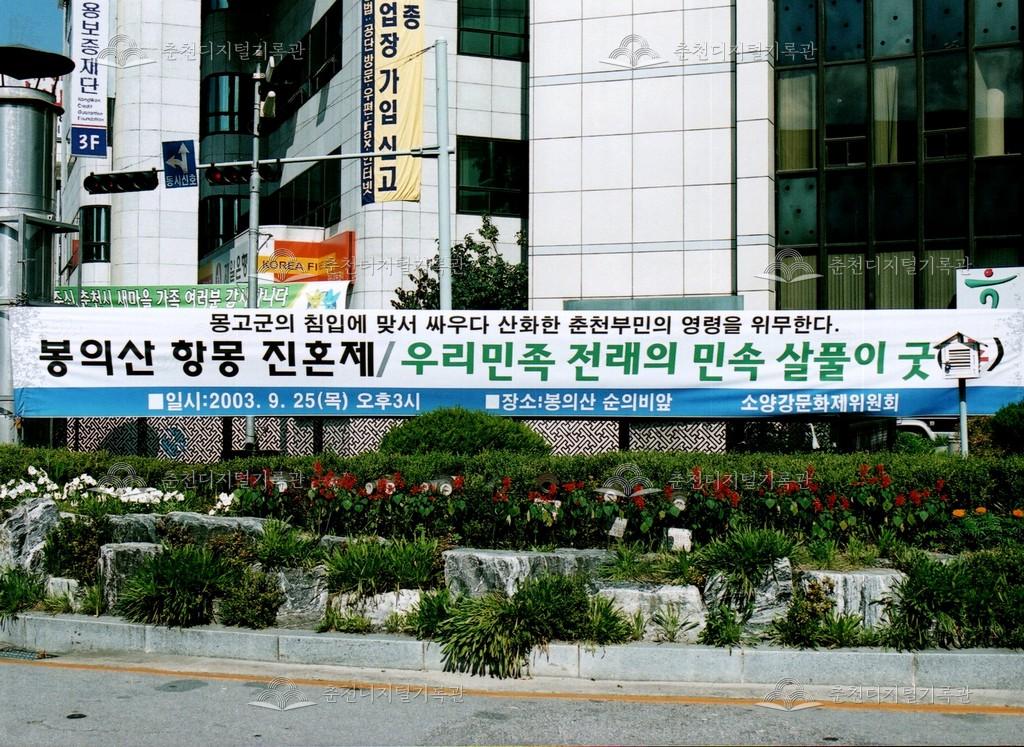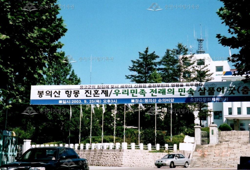 2003년 제25회 소양강문화제의 봉의산 항몽 진혼제(현제 충의제) 현수막 사진이다. 봉의산순의비는 1983년 제1회 소양제 개최에 맞춰 건립되어 축제를 여는 공간이 되었다. 최초에 "봉의산제"로 명명되어 이어졌으나 제향 대상이 모호할 수 있는 명칭이라하여 고려때 몽고군에 희생된 춘천부민의 넋을 달래는 의미에서 "항몽순국부민추도제"로 개칭되었다가 "봉의산항몽진혼제"로 다시 변경되었다.