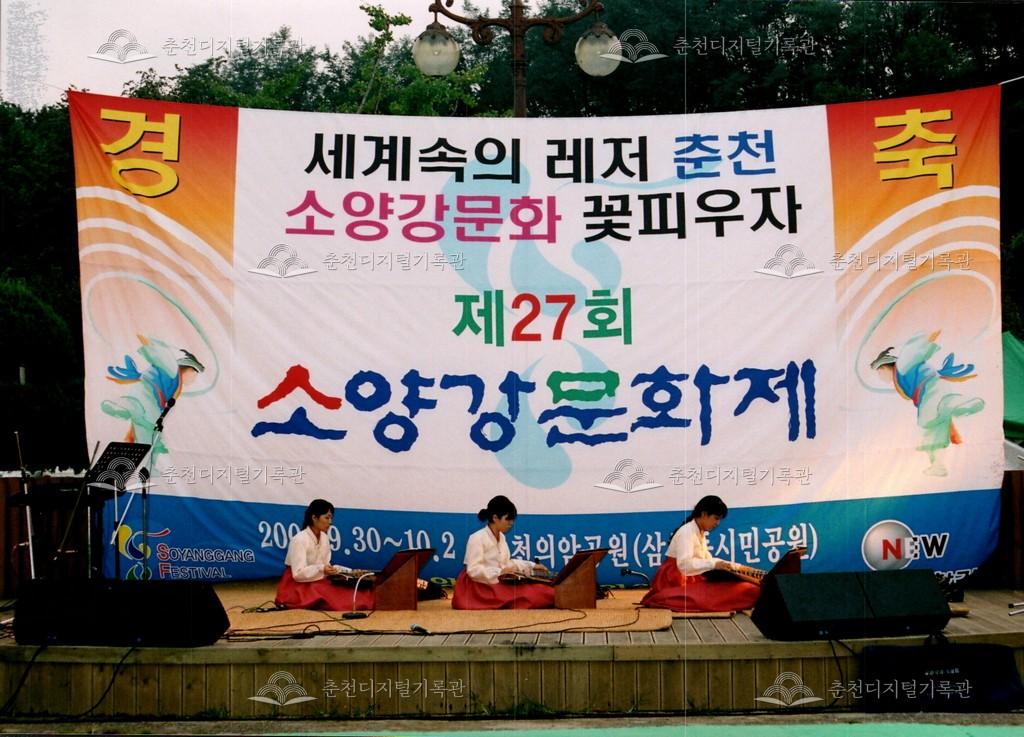 제27회 소양강문화제 공연 사진 등록번호 00003062 생산일자 2005.10.01 생산지역 춘천시 삼천동 생산자 춘천문화원 수집처 춘천문화원 소장자 춘천학연구소 내용 2005년 제27회 소양강문화제의 공연 사진이다. 국악 공연으로 추정된다. 사용안내 비상업적 이용만 가능|©춘천디지털기록관 상업적 사용·수정·재배포는 저작권자 동의 필요 다운로드 목록보기
