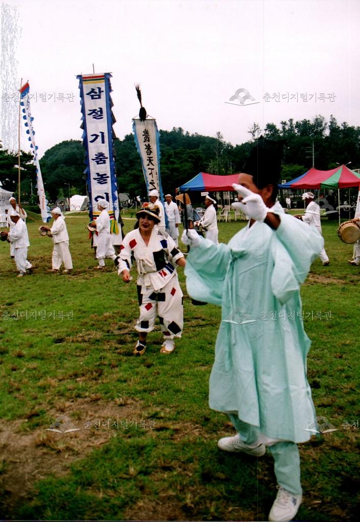 제27회 소양강문화제 공연 사진 등록번호 00003063 생산일자 2005.10.01 생산지역 춘천시 삼천동 생산자 춘천문화원 수집처 춘천문화원 소장자 춘천학연구소 내용 2005년 제27회 소양강문화제의 공연 사진이다. 풍년을 기원하는 놀이로 추정된다. 삼절기춤놀이의 깃발이 보인다. 사용안내 비상업적 이용만 가능|©춘천디지털기록관 상업적 사용·수정·재배포는 저작권자 동의 필요 다운로드 목록보기