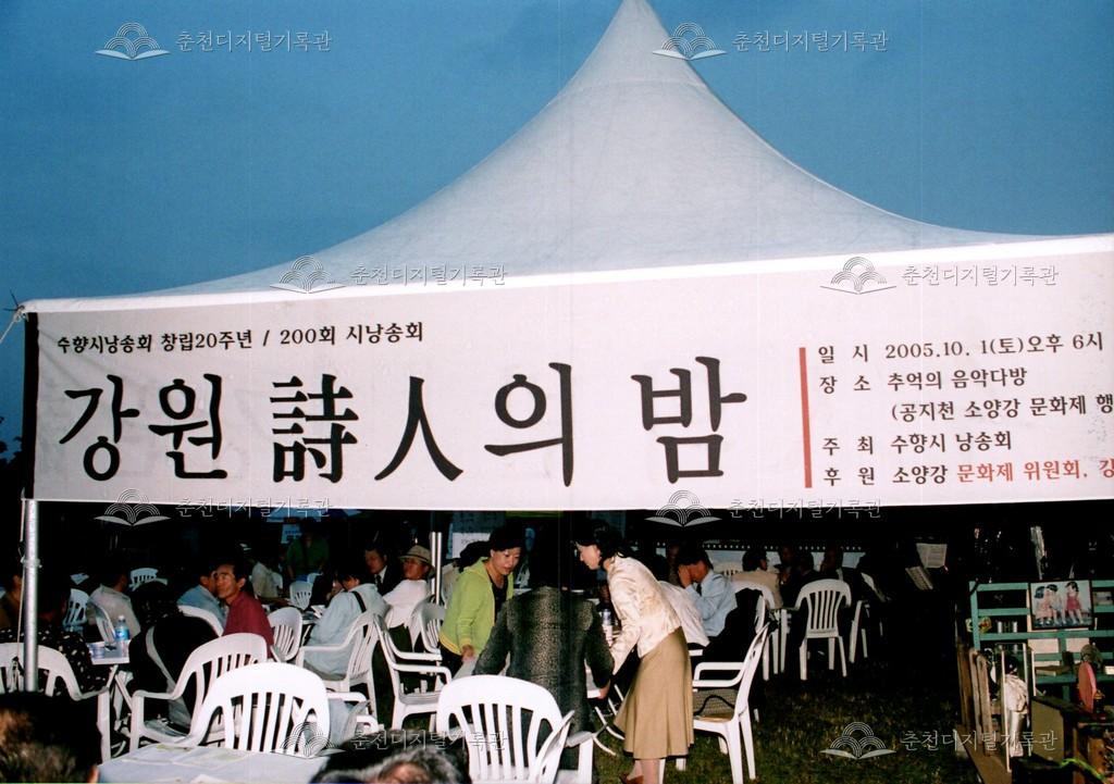 2005년 제27회 소양강문화제의 시낭송회 강원 시인의 밤 사진이다. 수향시낭송회 창립20주년, 200회 시낭송회로 공지천 의암공원 내에 마련된 추억의 음악다방에서 진행되었다.