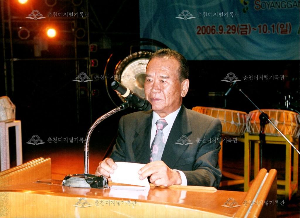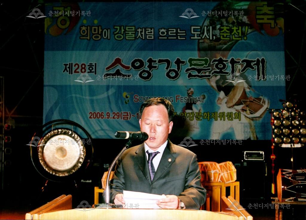 2006년 제28회 소양강문화제의 개회식 사진이다. 인사말을 하는 춘천문화원 이대근 15대 원장과 축사를 하는 이광준 33대 춘천시장 등의 모습이 보인다.