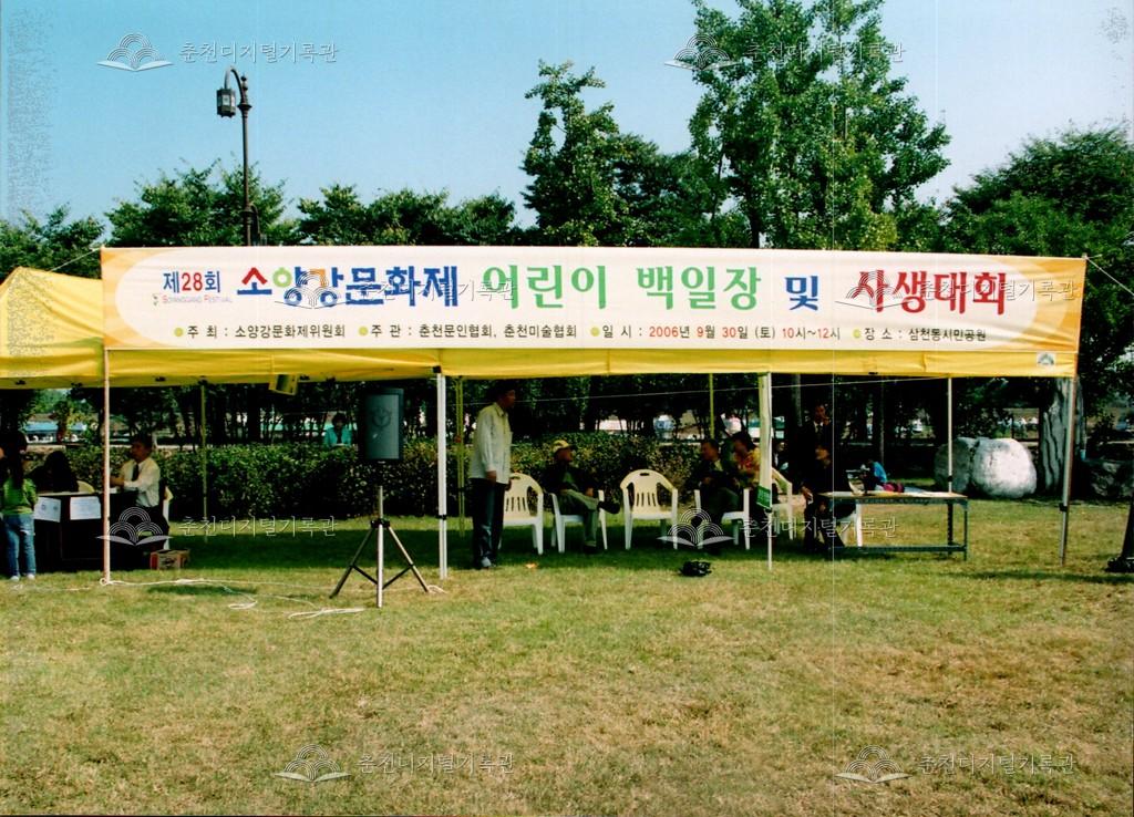 제28회 소양강문화제 백일장 및 사생대회 사진 등록번호 00003086 생산일자 2006.09.30 생산지역 춘천시 삼천동 생산자 춘천문화원 수집처 춘천문화원 소장자 춘천학연구소 내용 2006년 제28회 소양강문화제의 어린이 백일장 및 사생대회 사진이다. 춘천문인협회와 춘천미술협회가 주관했다. 사용안내 비상업적 이용만 가능|©춘천디지털기록관 상업적 사용·수정·재배포는 저작권자 동의 필요 다운로드 목록보기