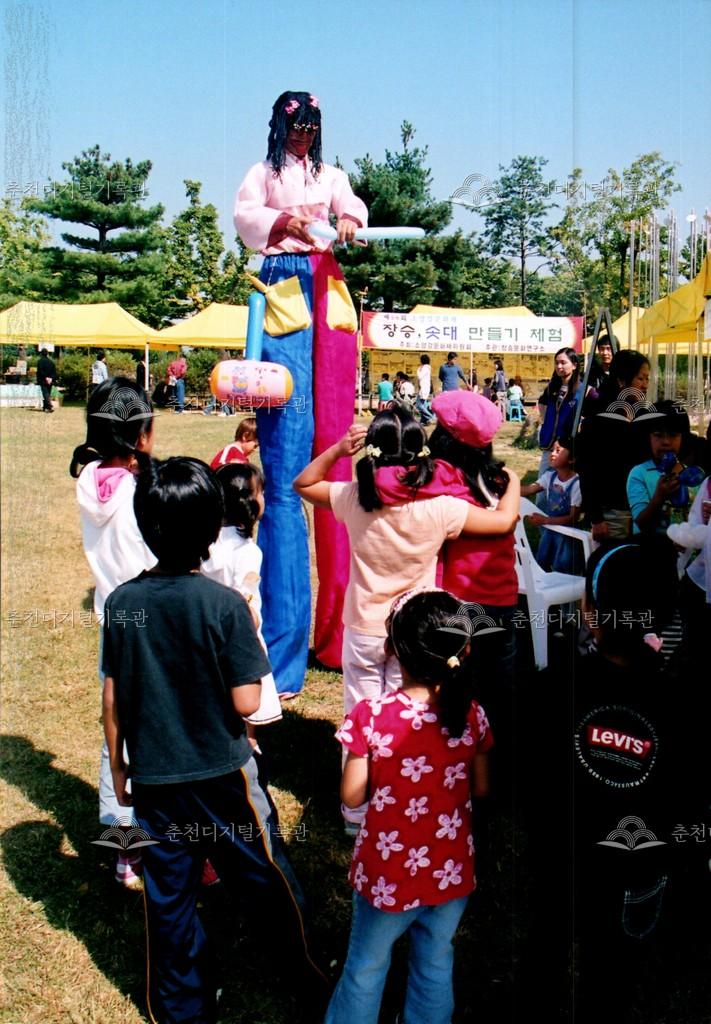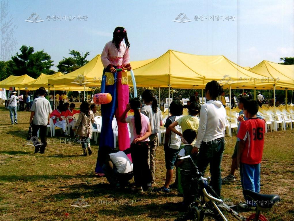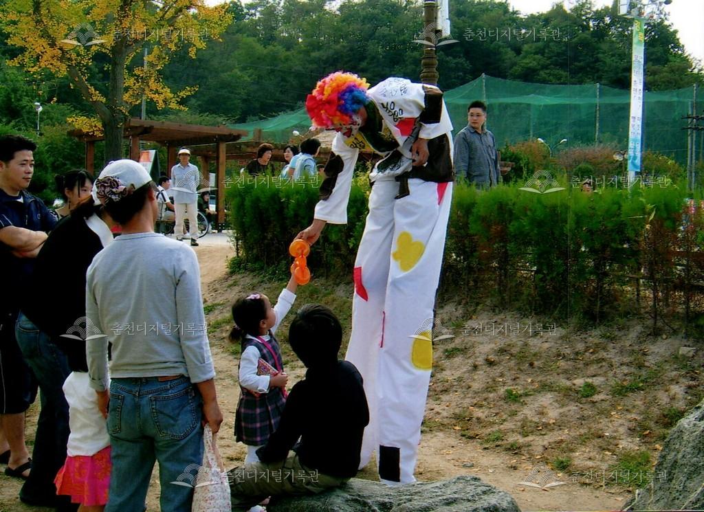 2006년 제28회 소양강문화제의 사진이다. 광대 분장을 한 공연자가 시민들에게 풍선 아트를 하는 모습이다.