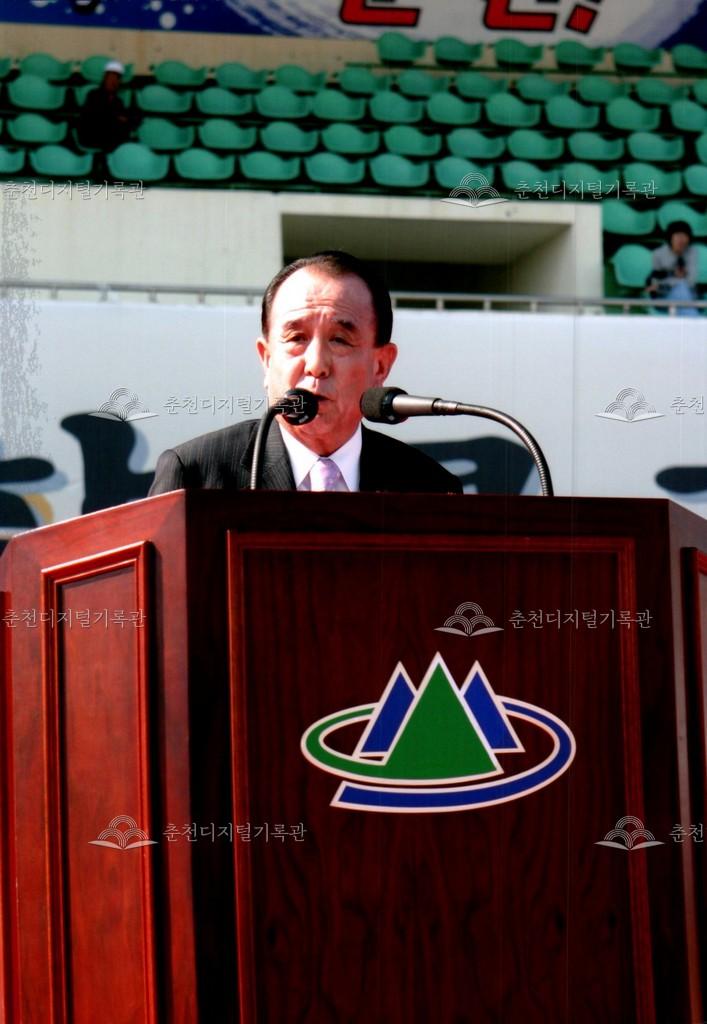 2007년 제29회 소양강문화제의 개회식 사진이다. 축사를 하는 춘천시의회 이건실 7대 의장의 모습이다.