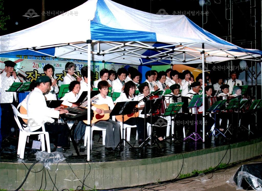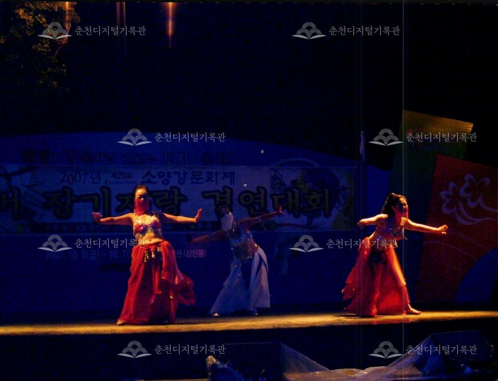 2007년 제29회 소양강문화제의 실버 장기자랑 경연대회 사진이다. 리코더 연주, 합주, 벨리 댄스 등 무대와 시상이 함꼐 진행되었다.