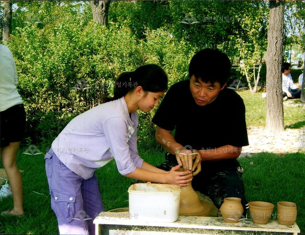 제29회 소양강문화제 체험장 사진 등록번호 00003188 생산일자 2007.10.06 생산지역 춘천시 삼천동 생산자 춘천문화원 수집처 춘천문화원 소장자 춘천학연구소 내용 2007년 제29회 소양강문화제의 체험장 사진이다. 도자기 공예를 하는 모습이다. 사용안내 비상업적 이용만 가능|©춘천디지털기록관 상업적 사용·수정·재배포는 저작권자 동의 필요 다운로드 목록보기