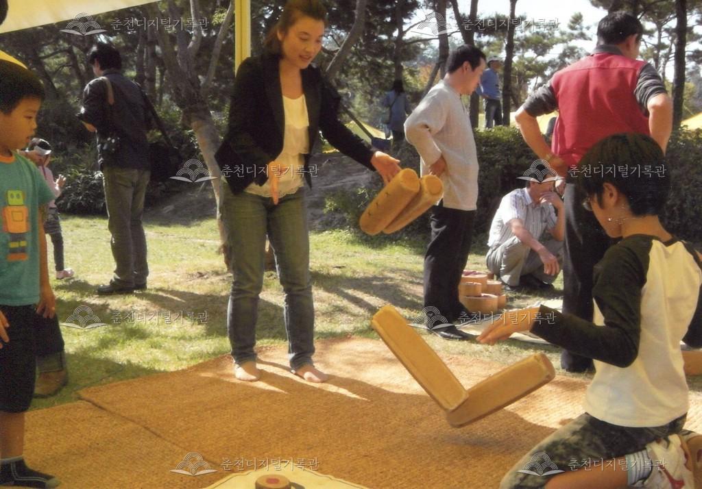 2011년 제33회 소양강문화제의 체험장 사진이다. 대형 윷놀이를 하는 모습이다.
