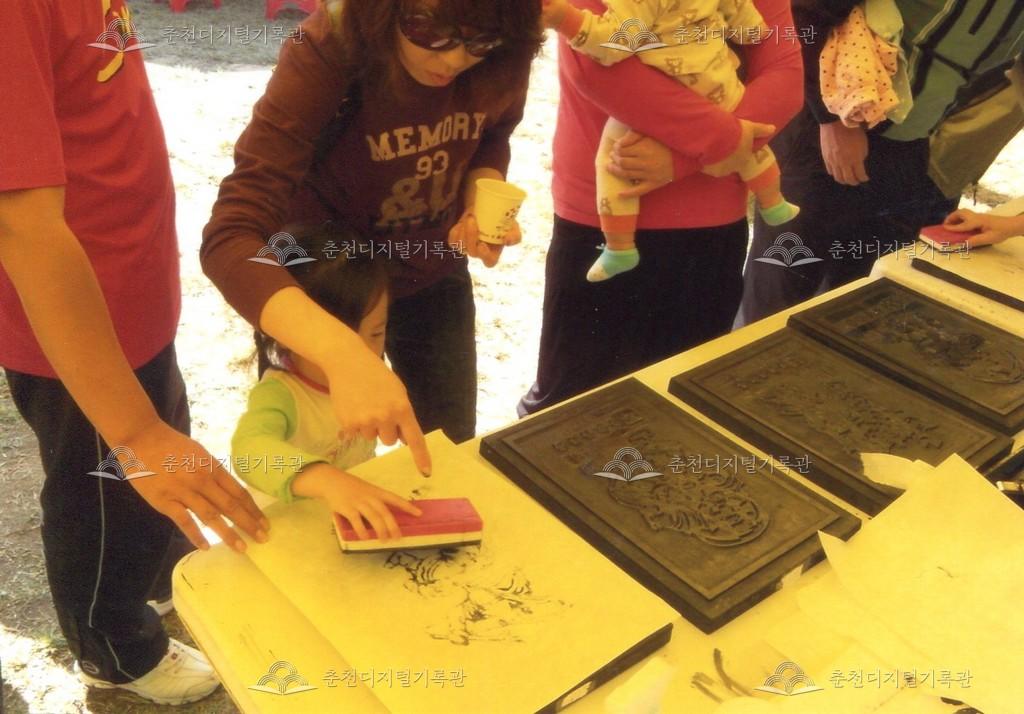 제33회 소양강문화제 체험장 사진 등록번호 00003317 생산일자 2011.09 생산지역 춘천시 삼천동 생산자 춘천문화원 수집처 춘천문화원 소장자 춘천학연구소 내용 2011년 제33회 소양강문화제의 체험장 사진이다. 12지신 목판 찍기 체험장의 모습이다. 사용안내 비상업적 이용만 가능|©춘천디지털기록관 상업적 사용·수정·재배포는 저작권자 동의 필요 다운로드 목록보기
