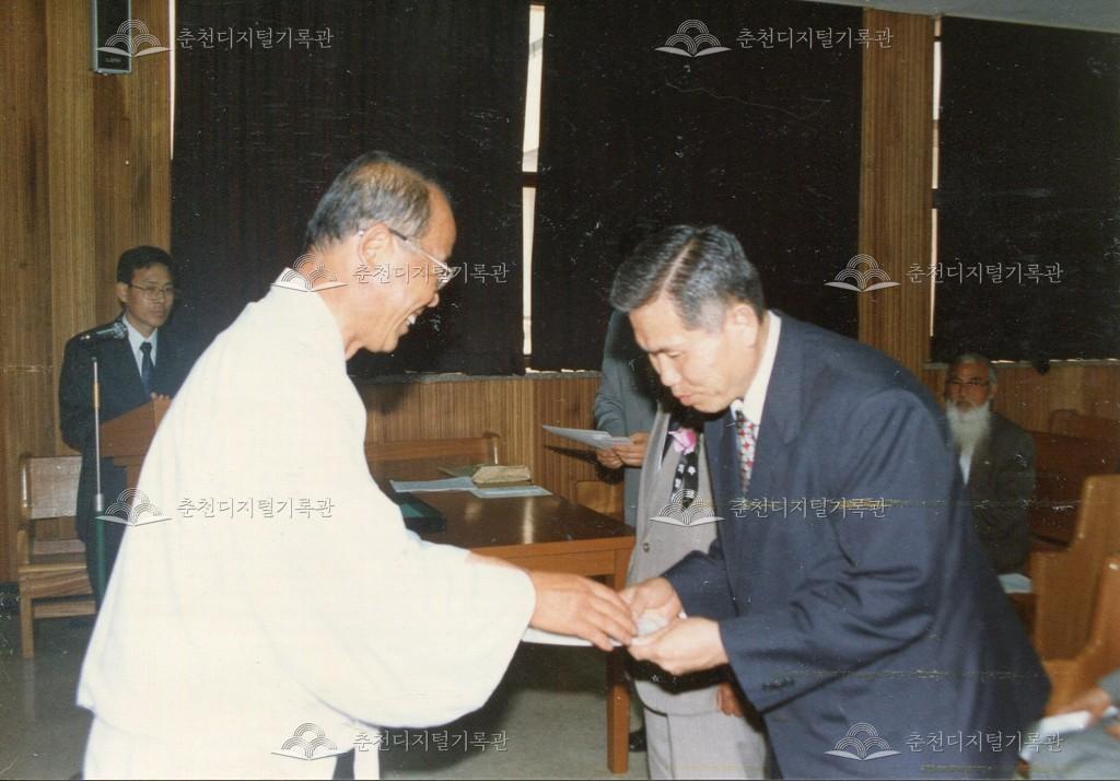 1996년 제12회 의암제 중 진행된 한글백일장의 시상식 사진이다.