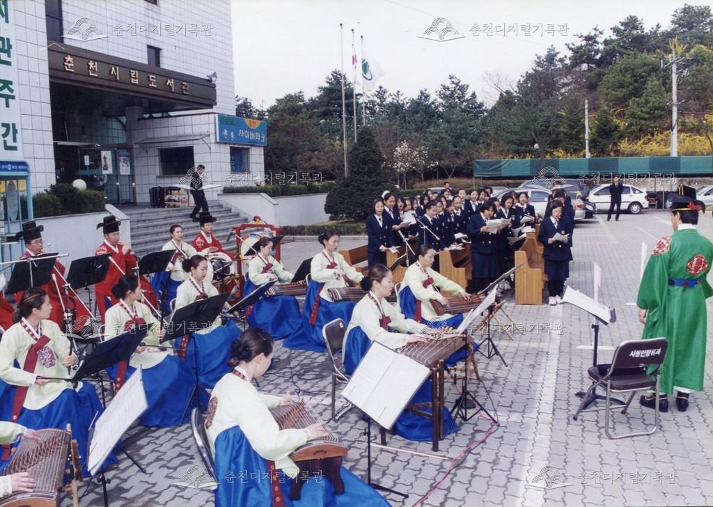 제17회 의암제 사진 등록번호 00003380 생산일자 2001.04.12 생산지역 춘천시 삼천동 생산자 춘천문화원 수집처 춘천문화원 소장자 춘천학연구소 내용 2001년 제17회 의암제 사진이다. 4월 12일 삼천동 춘천시립도서관(현재 춘천시립청소년도서관)에서 진행되었다. 사용안내 비상업적 이용만 가능|©춘천디지털기록관 상업적 사용·수정·재배포는 저작권자 동의 필요 다운로드 목록보기