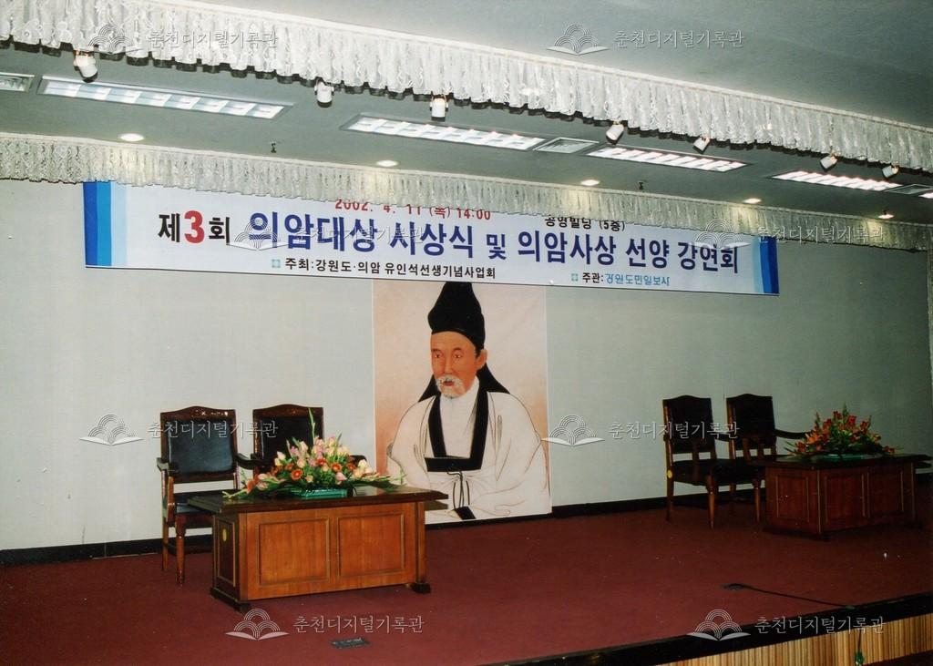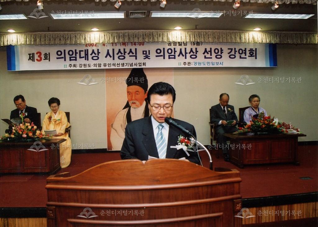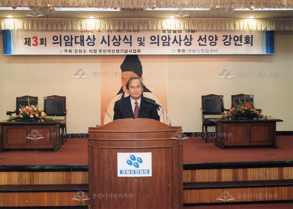 2002년 제3회 의암대상 시상식 및 의암사상 선양 강연회의 사진이다. 4월 11일 중앙로1가 공영빌딩(현재 도청제2별관) 5층에서 진행되었다.