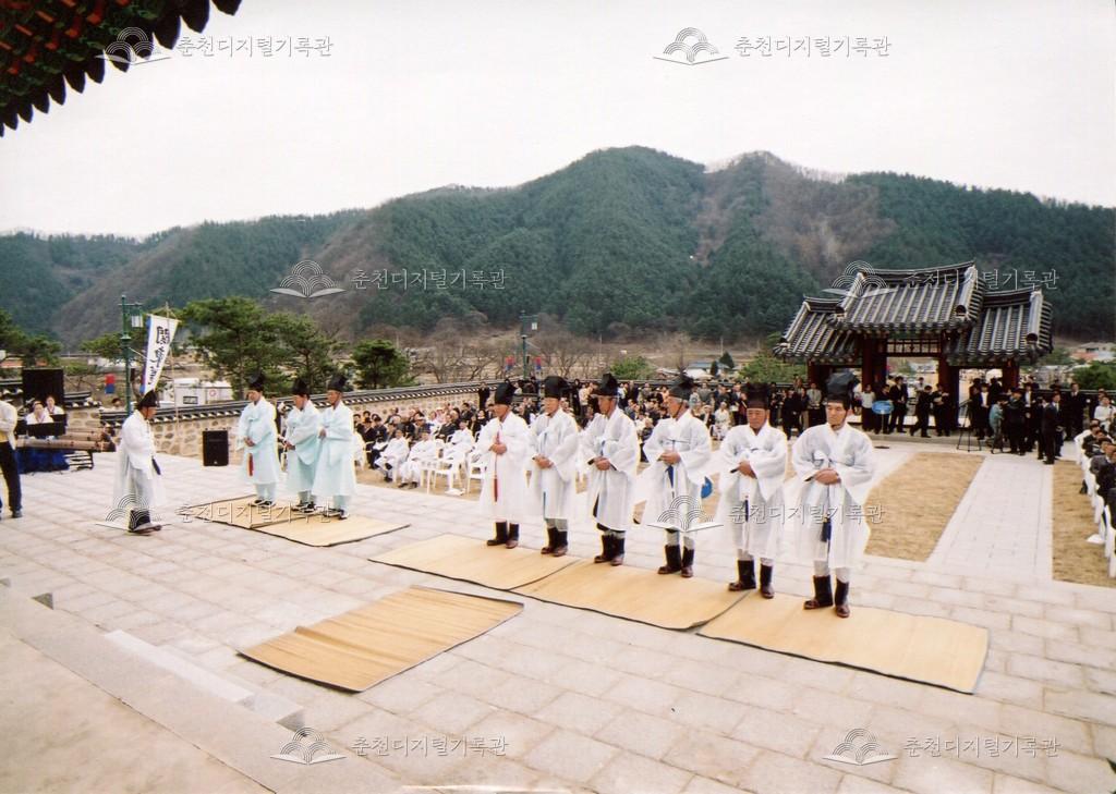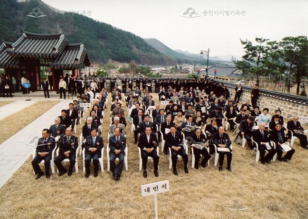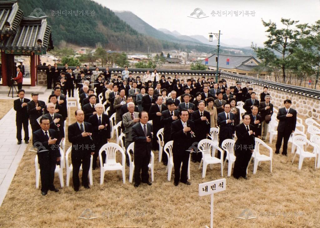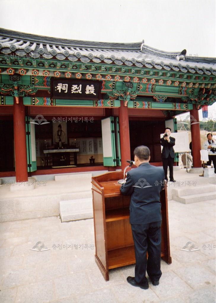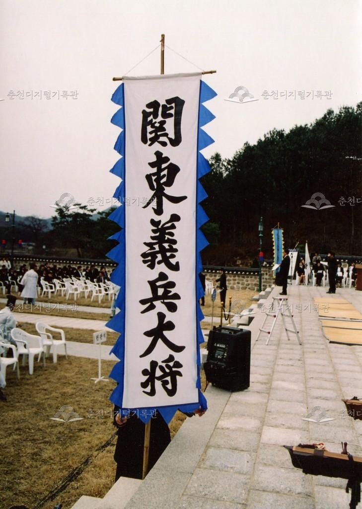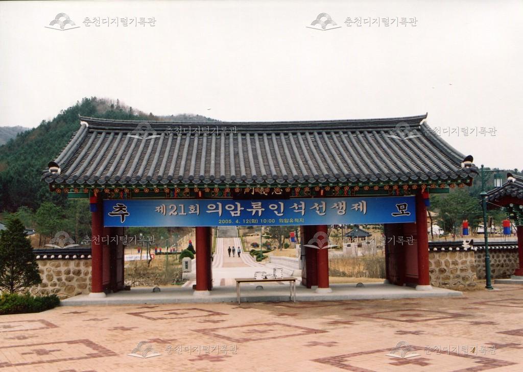 2005년 제21회 의암류인석선생제(의암제)의 사진이다. 2004년 5월 남면 가정리에 의암류인석기념관이 개관되어 2005년부터 기념관에서 의암제가 진행되었다. 관동의병대장기, 초상화 등의 모습이 보인다.