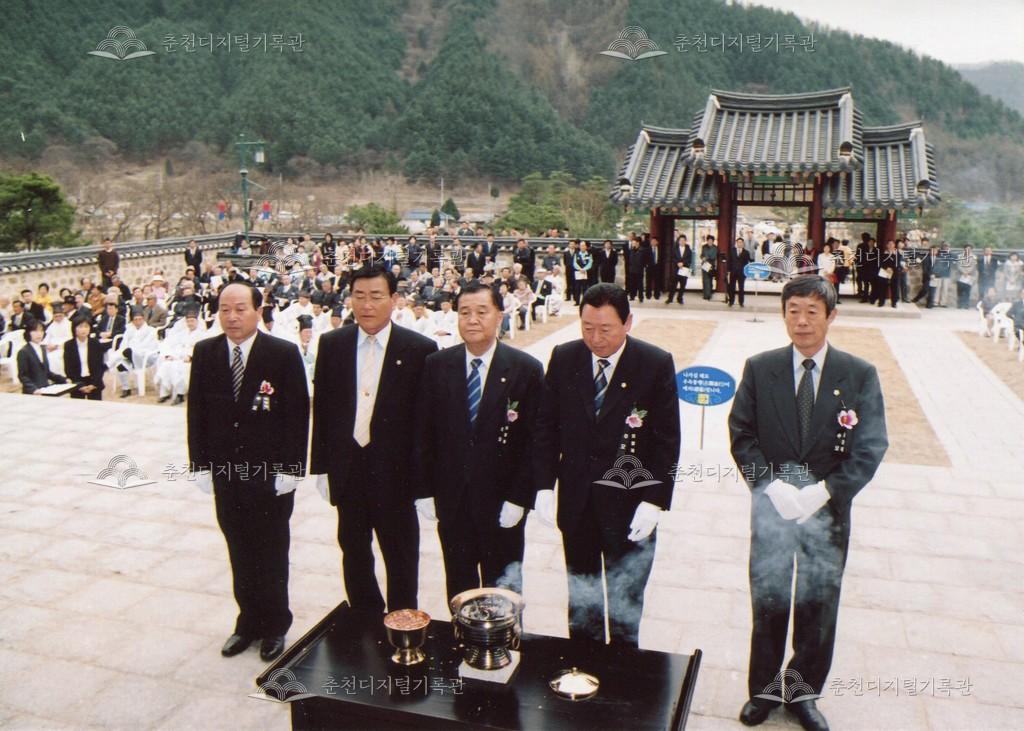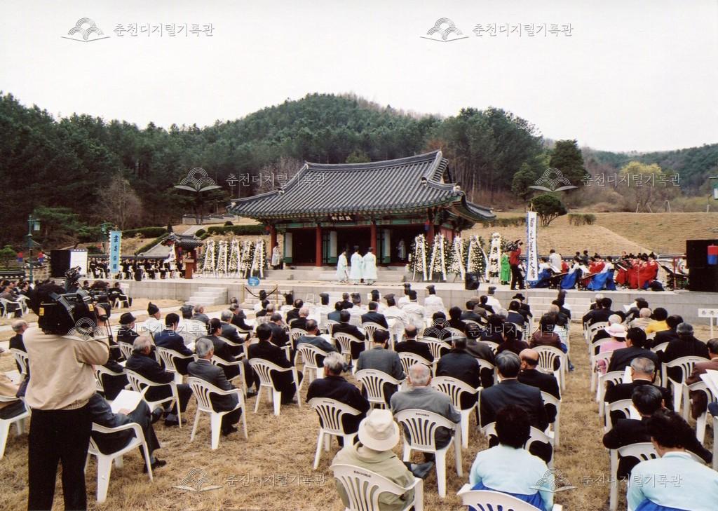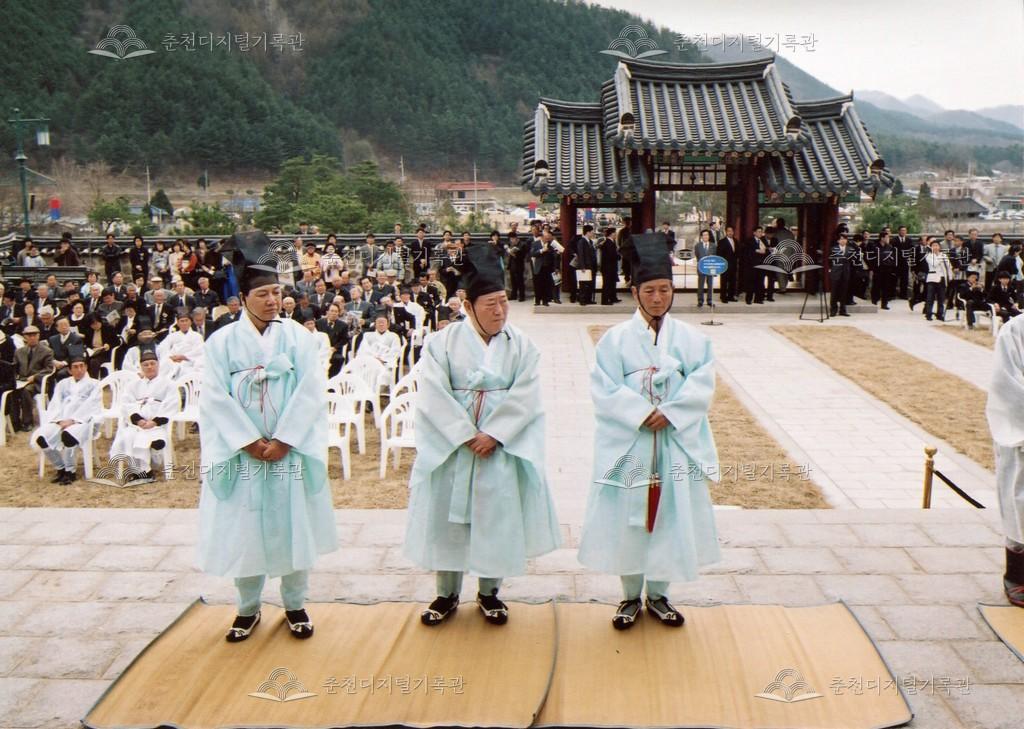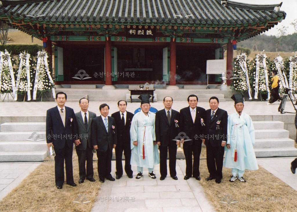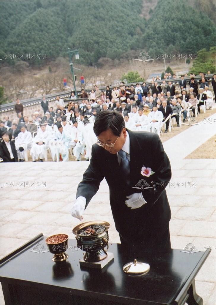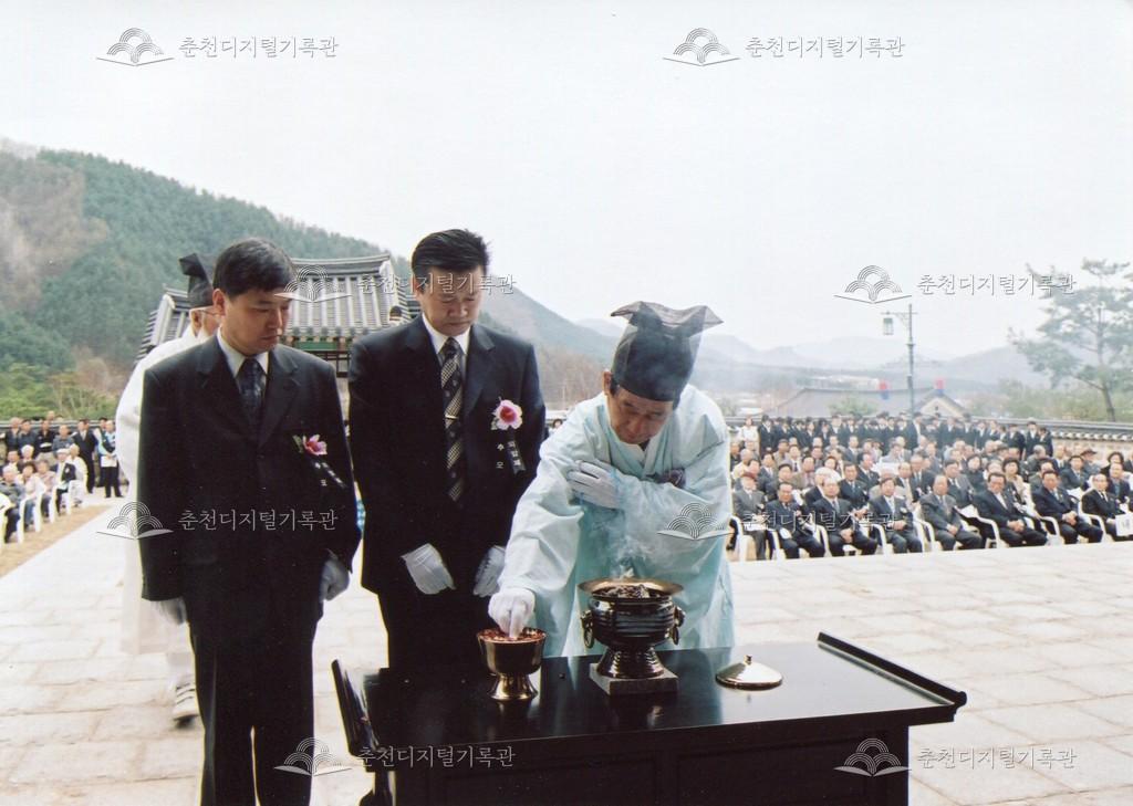 2005년 제21회 의암류인석선생제(의암제)의 사진이다. 2004년 5월 남면 가정리에 의암류인석기념관이 개관되어 2005년부터 기념관에서 의암제가 진행되었다. 관동의병대장기, 초상화 등의 모습이 보인다.