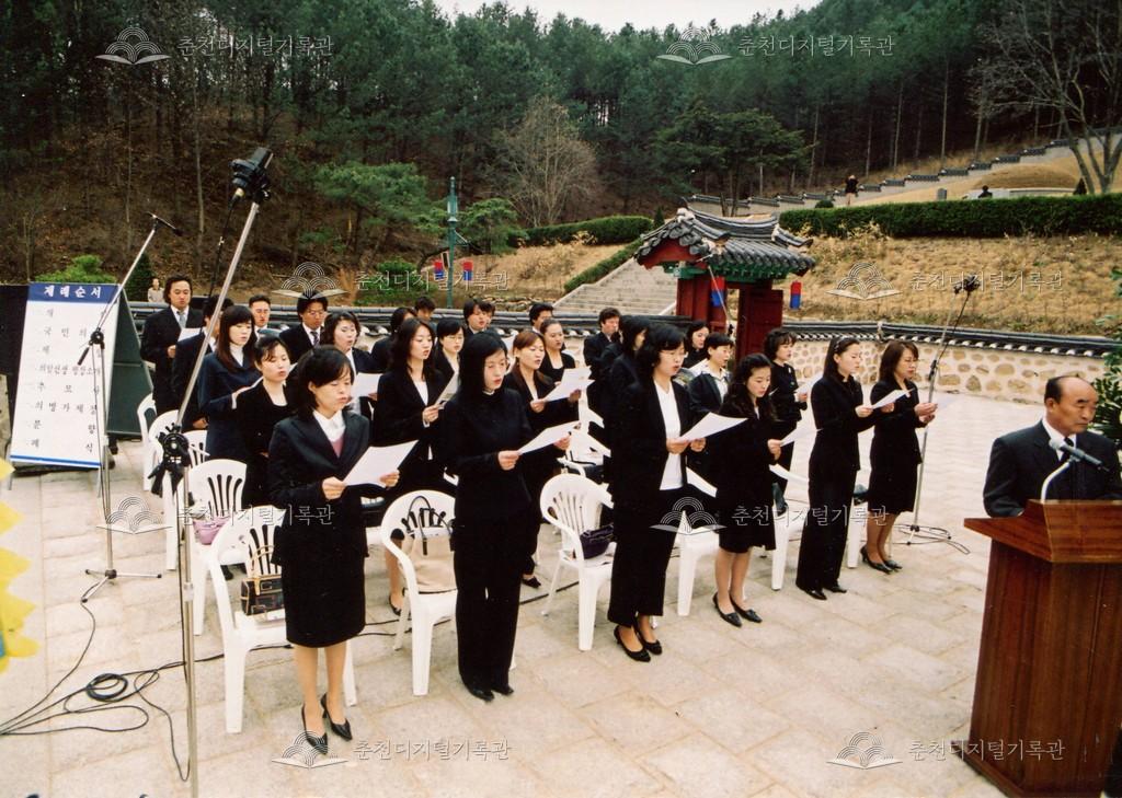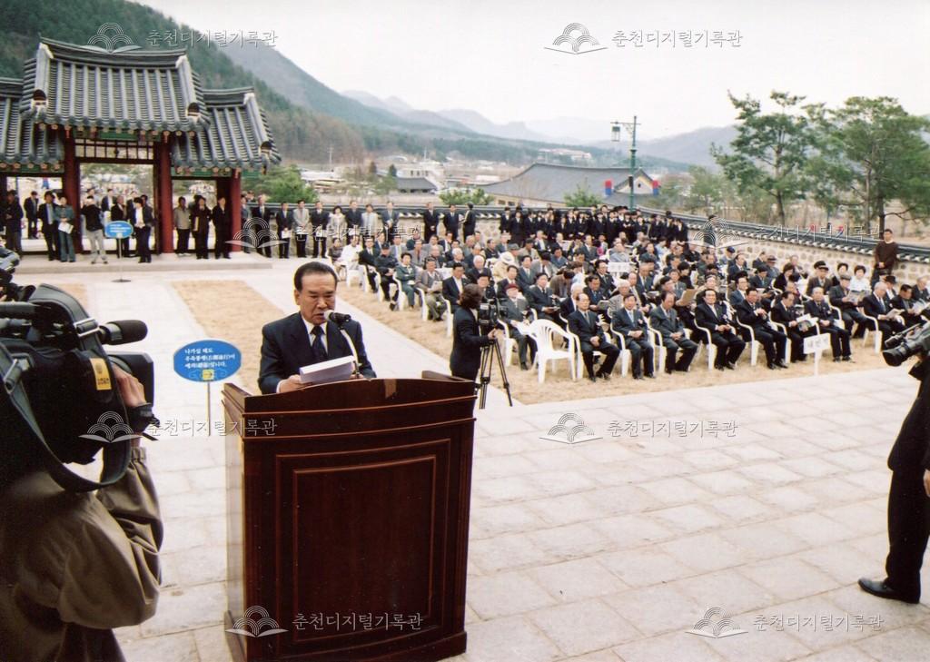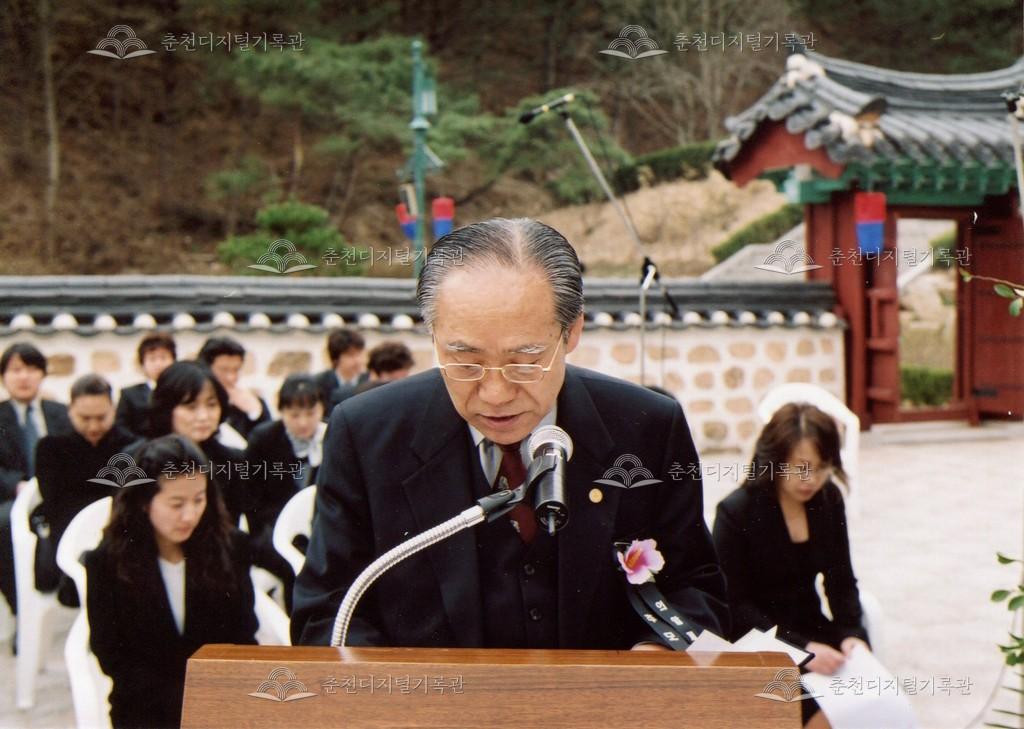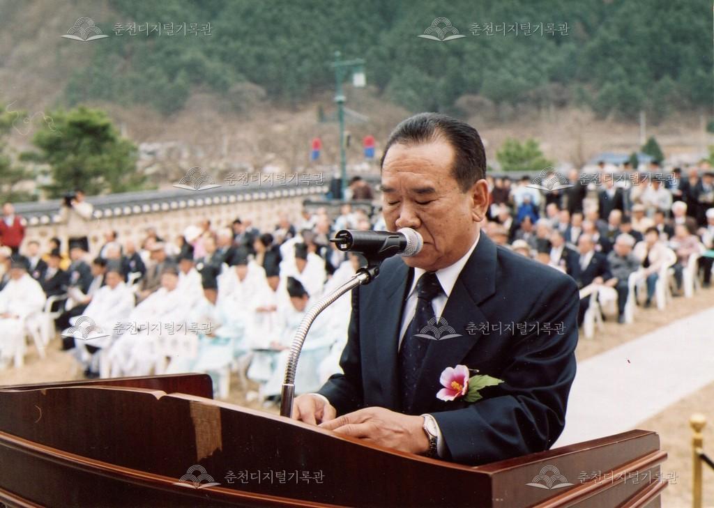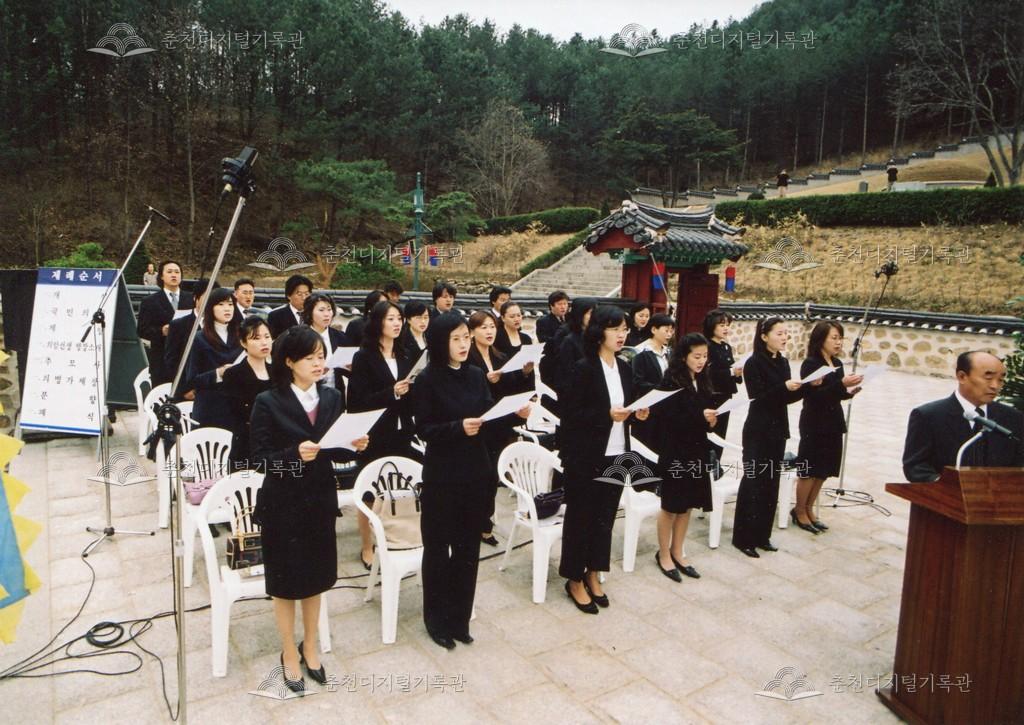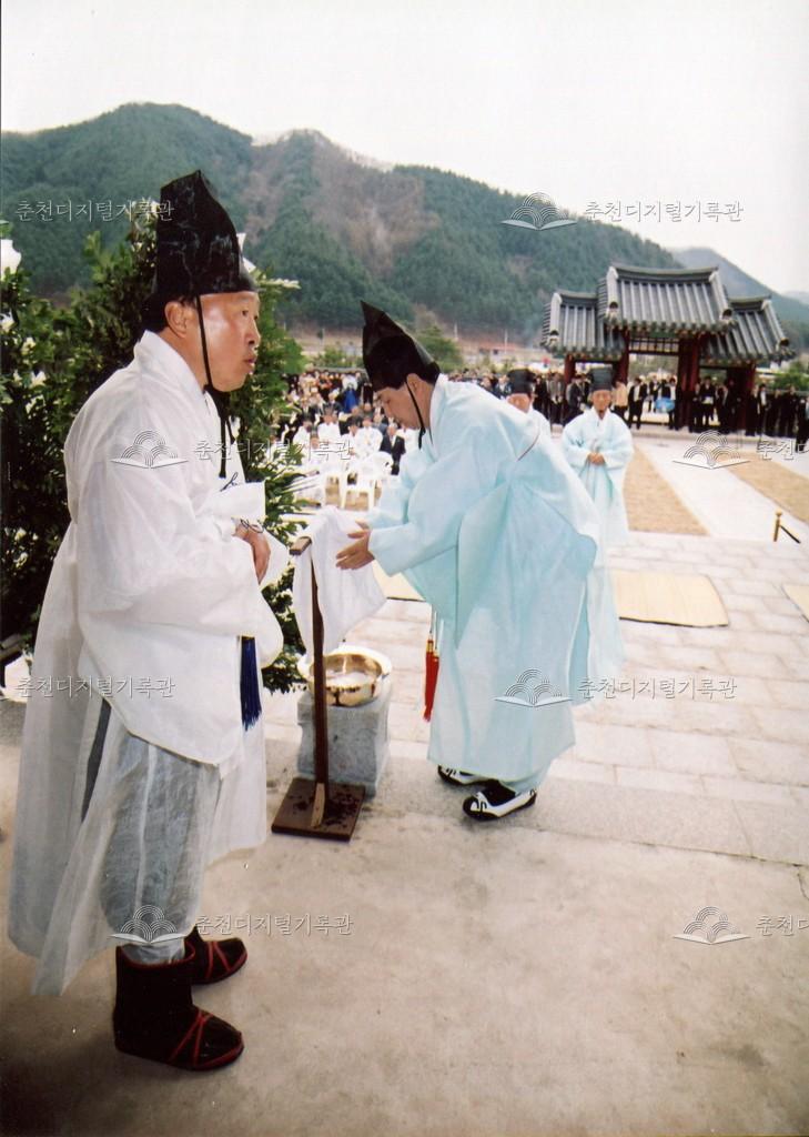 2005년 제21회 의암류인석선생제(의암제)의 사진이다. 2004년 5월 남면 가정리에 의암류인석기념관이 개관되어 2005년부터 기념관에서 의암제가 진행되었다. 관동의병대장기, 초상화 등의 모습이 보인다.