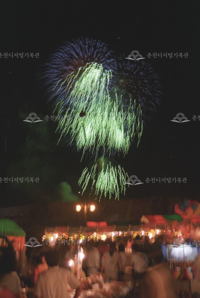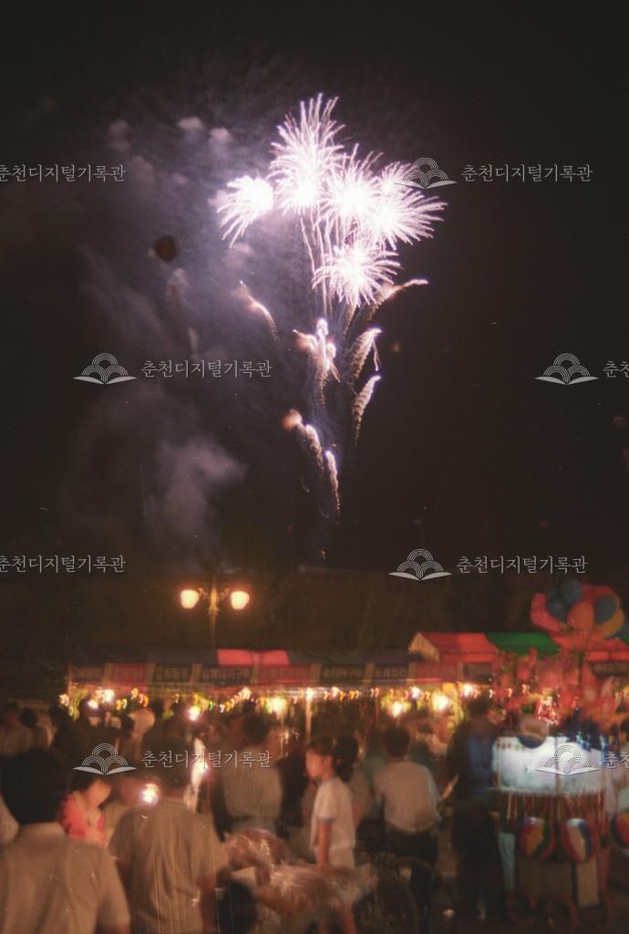 제7회 소양제_불꽃놀이 등록번호 00003758 생산일자 1989.06.10 생산지역 공지천 생산자 춘천시청 수집처 춘천시청 소장자 춘천시청 내용 제7회 소양제 전야제 행사 중 불꽃놀이 장면이다. 사용안내 비상업적 이용만 가능|©춘천디지털기록관 상업적 사용·수정·재배포는 저작권자 동의 필요 다운로드 목록보기