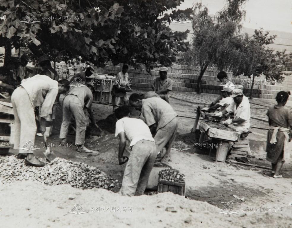 보도블럭 제작 광경 등록번호 00003783 생산일자 1969 생산지역 춘천시 근화동 생산자 미상 수집처 허일영 소장자 허일영 내용 시멘트 보도블럭 제작광경, 근화동 추정 사용안내 비상업적 이용만 가능|©춘천디지털기록관 상업적 사용·수정·재배포는 저작권자 동의 필요 다운로드 목록보기