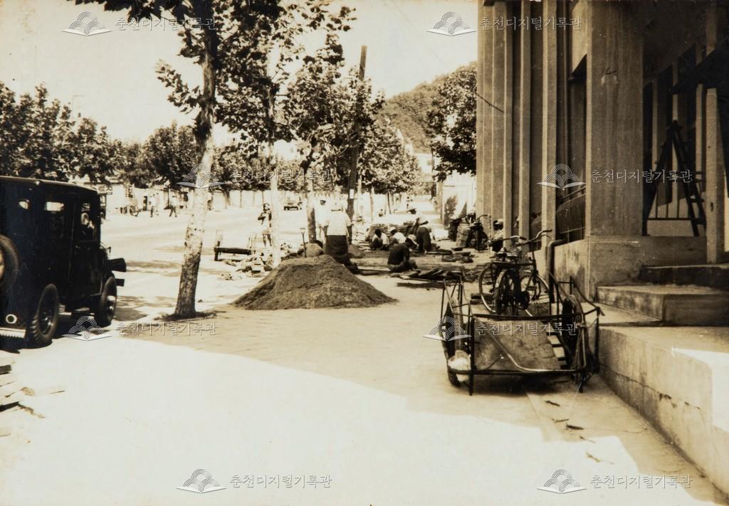 중앙로터리 주변 등록번호 00003842 생산일자 1971 생산지역 춘천시 약사명동 생산자 미상 수집처 허일영 소장자 허일영 내용 중앙로터리 오내과 주변 보도블럭 교체 작업 현장이다. 사용안내 비상업적 이용만 가능|©춘천디지털기록관 상업적 사용·수정·재배포는 저작권자 동의 필요 다운로드 목록보기