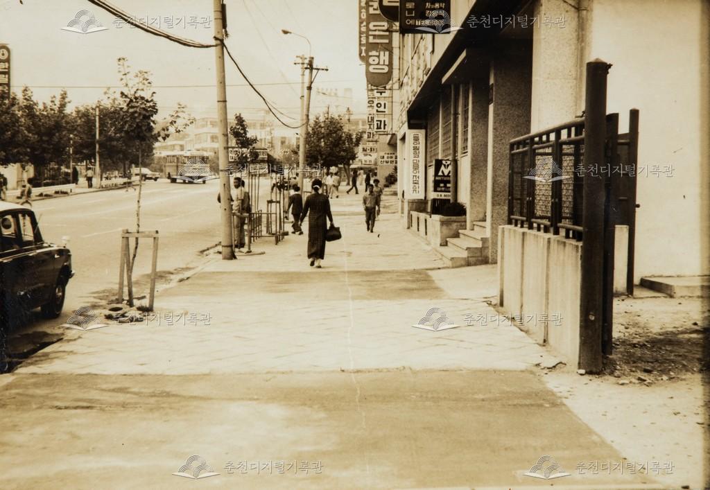 중앙로2가 모습 등록번호 00003846 생산일자 1972 생산지역 춘천시 중앙로2가 생산자 미상 수집처 허일영 소장자 허일영 내용 중앙로2가 주변이다.. 강원은행 앞 보도블럭이 말끔하게 정리되어 있다. 사용안내 비상업적 이용만 가능|©춘천디지털기록관 상업적 사용·수정·재배포는 저작권자 동의 필요 다운로드 목록보기