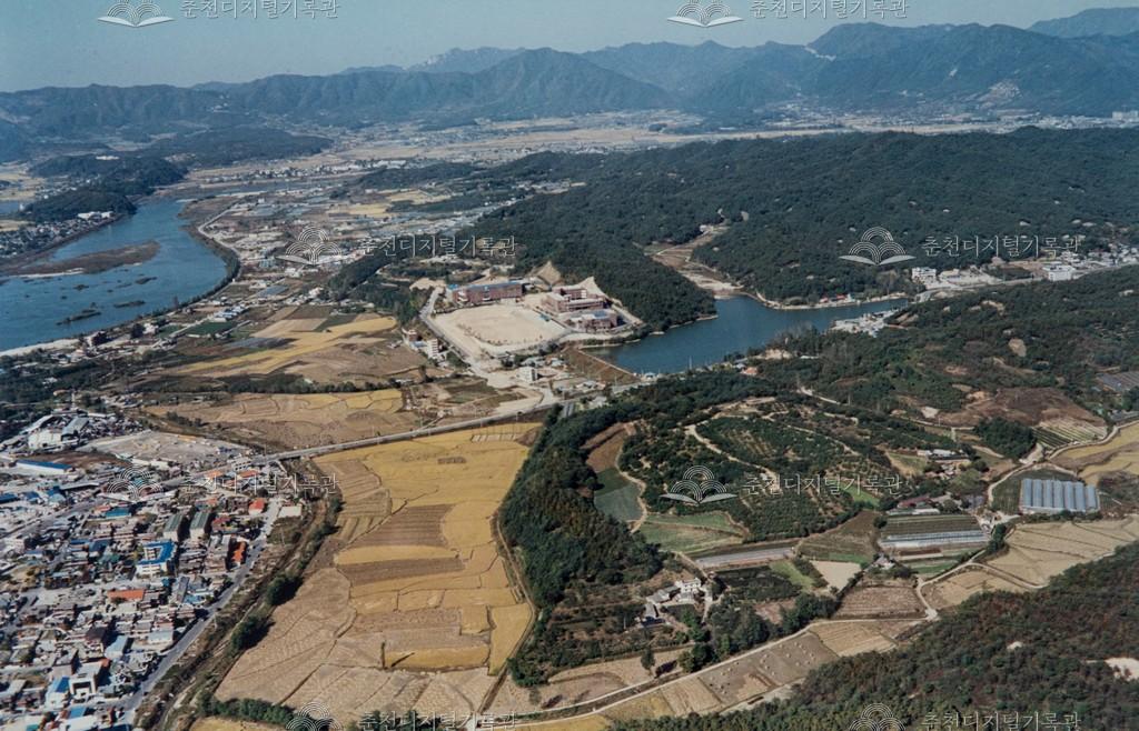 동면 장학리 일대 등록번호 00003885 생산일자 1995 생산지역 춘천시 동면 장학리 생산자 미상 수집처 허일영 소장자 허일영 내용 동면 장학리 일대의 모습이다. 주택이 밀집한 지역은 후평동이다. 사진 중앙에 1994년 이전한 강원중고등학교가 보인다. 사용안내 비상업적 이용만 가능|©춘천디지털기록관 상업적 사용·수정·재배포는 저작권자 동의 필요 다운로드 목록보기
