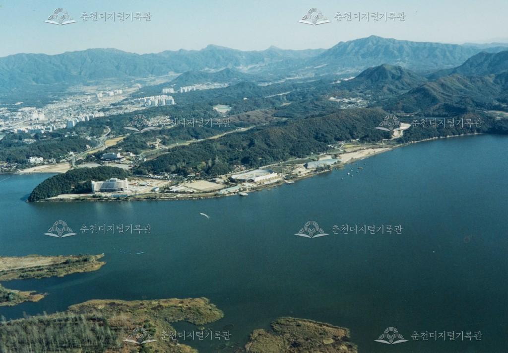 삼천동 일대 등록번호 00003906 생산일자 미상 생산지역 춘천 삼천동 생산자 미상 수집처 허일영 소장자 허일영 내용 삼천동 일대를 촬영한 사진이다. 춘천베어스호텔, 옛 두산리조트, 사이클경기장이 보인다. 사용안내 비상업적 이용만 가능|©춘천디지털기록관 상업적 사용·수정·재배포는 저작권자 동의 필요 다운로드 목록보기