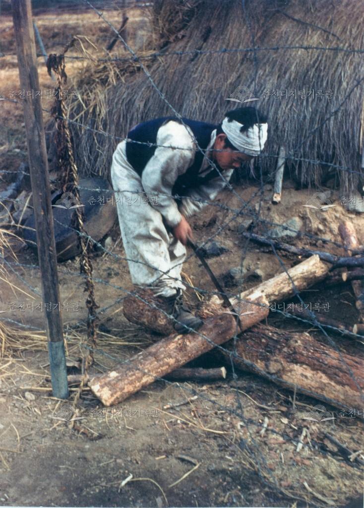 나무를 자르는 소년 등록번호 00004045 생산일자 미상 생산지역 춘천 생산자 토마스누조 수집처 춘천문화재단 소장자 춘천문화재단 내용 부대 바로 옆에 민가가 있었는지 철조망 뒤로 겨우살이를 위해 톱으로 나무를 자르고 있다. 바지저고리에 머리를 질끈 동여매고 거기에다 군화까지 신고 있는 모습으로 부대주변의 생활상을 엿볼 수 있다. <춘천시문화재단 토마스누조 기증 사진전 "한국전쟁 직후 춘천의 일상" > 자세히 보기 닫기 사용안내 비상업적 이용만 가능|©춘천디지털기록관 상업적 사용·수정·재배포는 저작권자 동의 필요 다운로드 목록보기