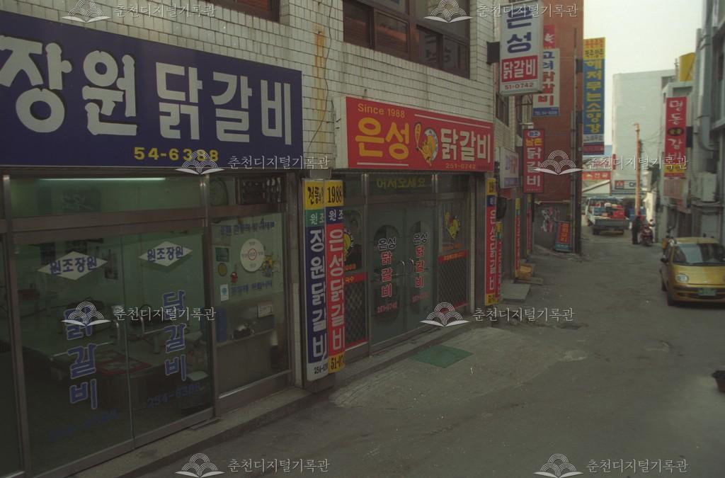 명동 닭갈비골목 등록번호 00004150 생산일자 2000.01.29 생산지역 춘천 조양동 생산자 춘천시청 수집처 춘천시청 소장자 춘천시청 내용 명동 닭갈비 골목 풍경 사용안내 비상업적 이용만 가능|©춘천디지털기록관 상업적 사용·수정·재배포는 저작권자 동의 필요 다운로드 목록보기