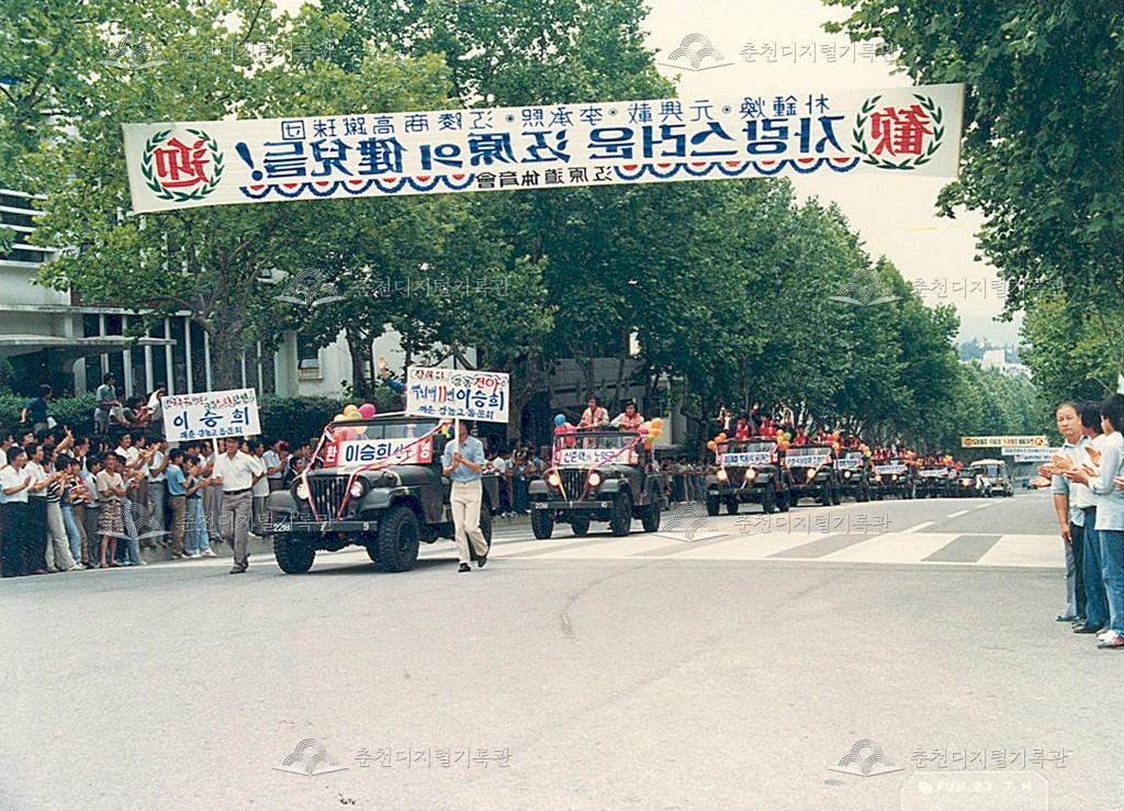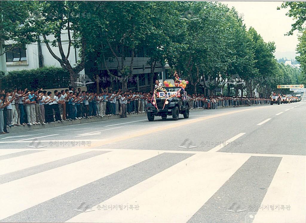 세계청소년축구대회 4강 진출 강원도민환영대회 등록번호 00004190 생산일자 1983 생산지역 춘천 소양동 생산자 춘천시청 수집처 춘천시청 소장자 춘천시청 내용 강원도청 광장과 중앙로1가에서 세계청소년축구대회 4강 진출 강원도민환영대회 행사와 카퍼레이드가 있었다. 춘천고등학교 출신 박종환 감독의 모습이 보인다. 자세히 보기 닫기 사용안내 비상업적 이용만 가능|©춘천디지털기록관 상업적 사용·수정·재배포는 저작권자 동의 필요 다운로드 목록보기