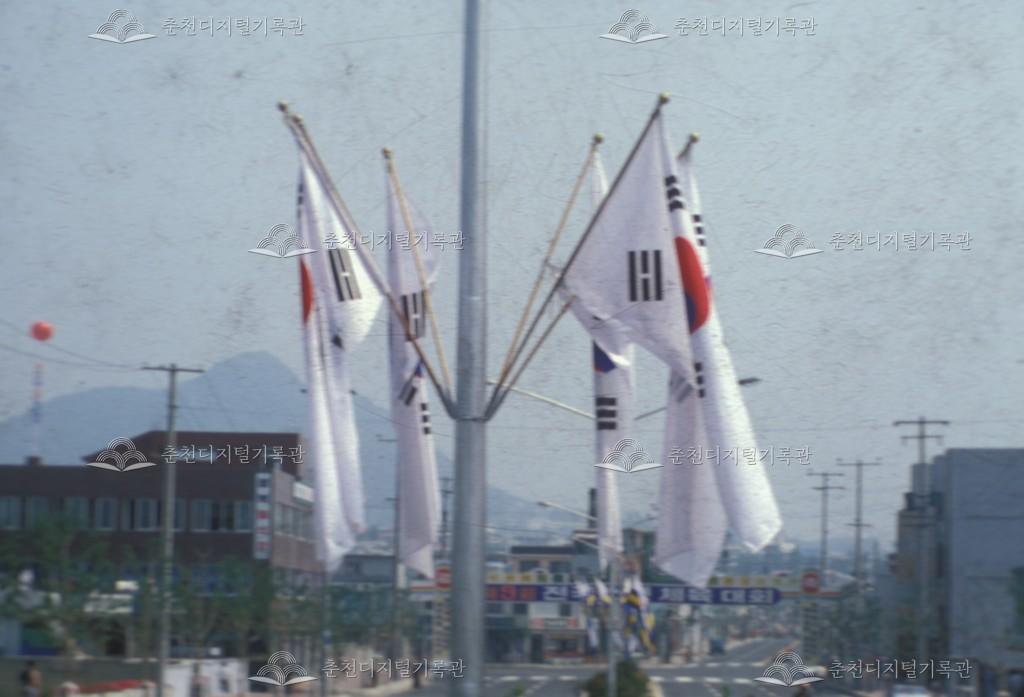 남부사거리 제9회 전국소년체육대회 홍보 아치 등록번호 00004285 생산일자 1980 생산지역 춘천 효자동 생산자 춘천시청 수집처 춘천시청 소장자 춘천시청 내용 남부사거리에서 칠전동 방향 도로. 제9회 전국 소년체육대회 홍보아치가 설치되어있다. 사용안내 비상업적 이용만 가능|©춘천디지털기록관 상업적 사용·수정·재배포는 저작권자 동의 필요 다운로드 목록보기