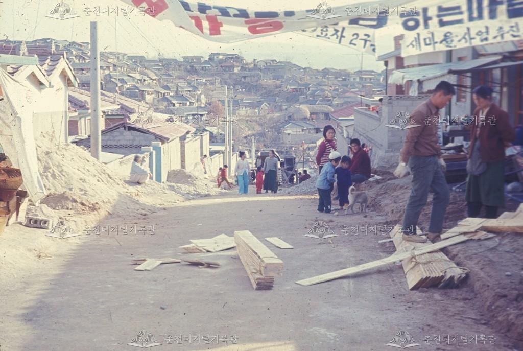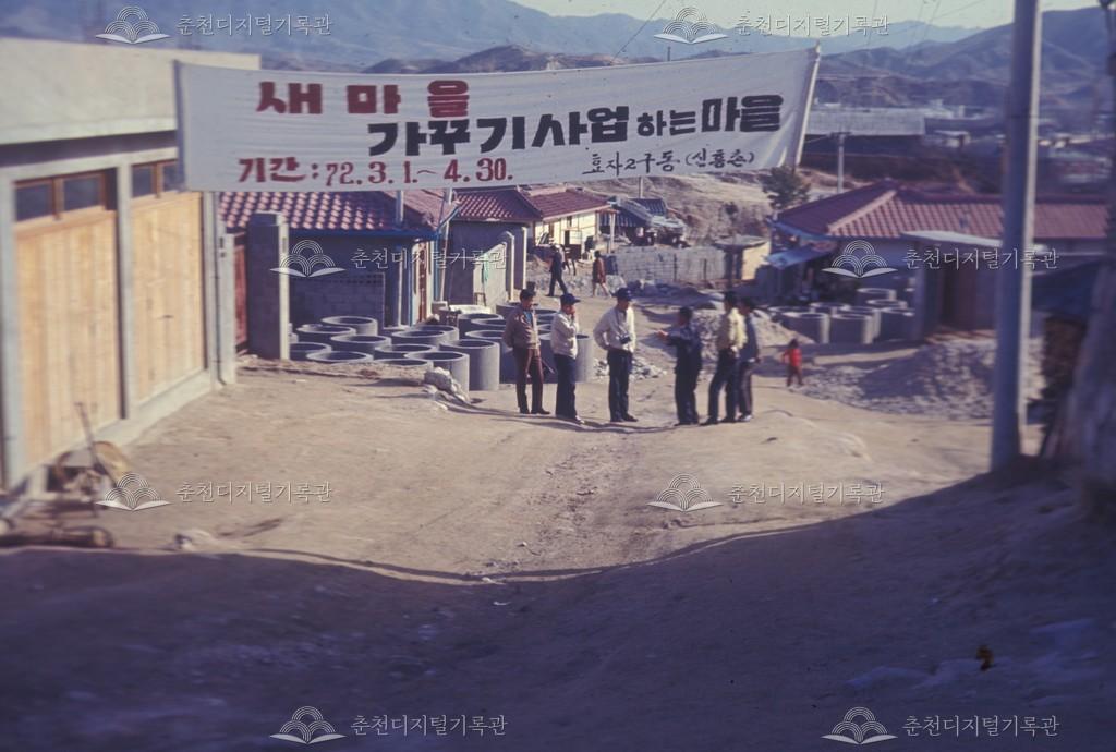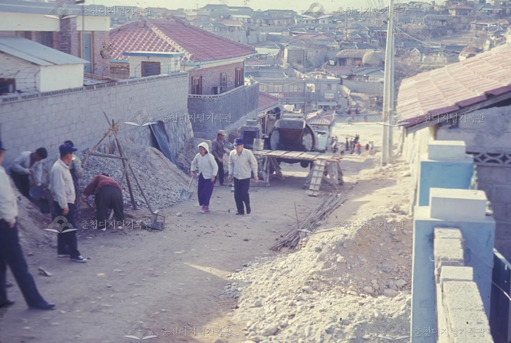 효자동 새마을운동 등록번호 00004294 생산일자 1972 생산지역 춘천 효자동 생산자 춘천시청 수집처 춘천시청 소장자 춘천시청 내용 효자2구동 주택가(현재 춘천교대부설초등학교 뒤편 주택가) 새마을운동 사업(신흥촌) 사용안내 비상업적 이용만 가능|©춘천디지털기록관 상업적 사용·수정·재배포는 저작권자 동의 필요 다운로드 목록보기