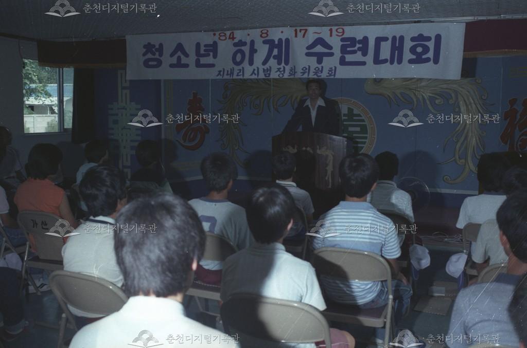 동면 복지회관 청소년 하계 수련대회 등록번호 00004425 생산일자 1984.08.17 생산지역 춘천 동면 생산자 춘천시청 수집처 춘천시청 소장자 춘천시청 내용 동면 지내리 시범정화위원회가 개최하고 동면 복지회관에서 열린 청소년 하계 수련대회 사용안내 비상업적 이용만 가능|©춘천디지털기록관 상업적 사용·수정·재배포는 저작권자 동의 필요 다운로드 목록보기