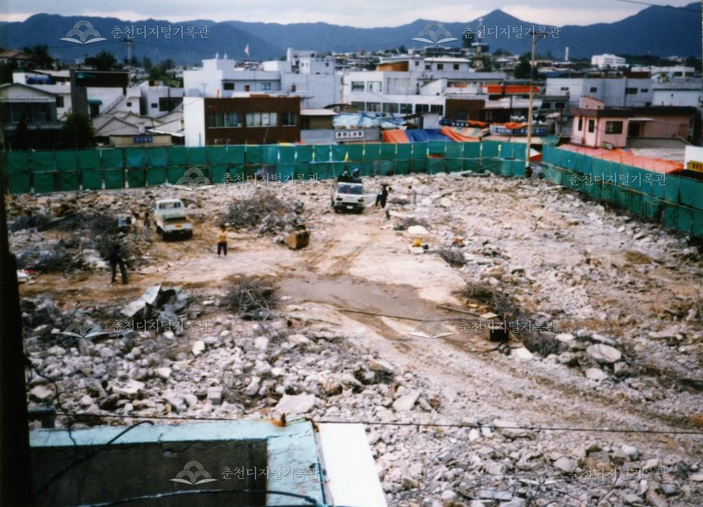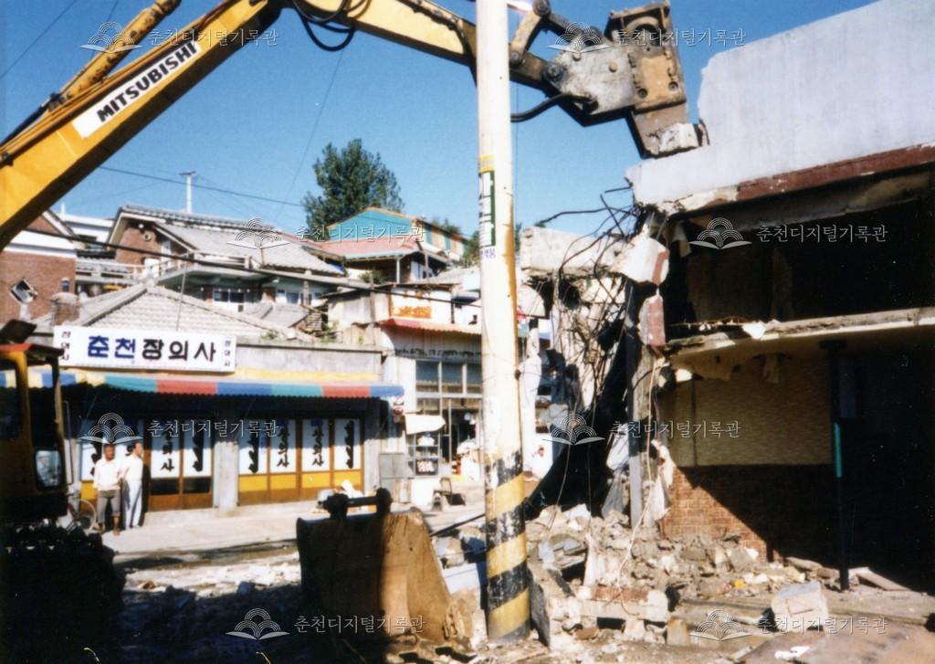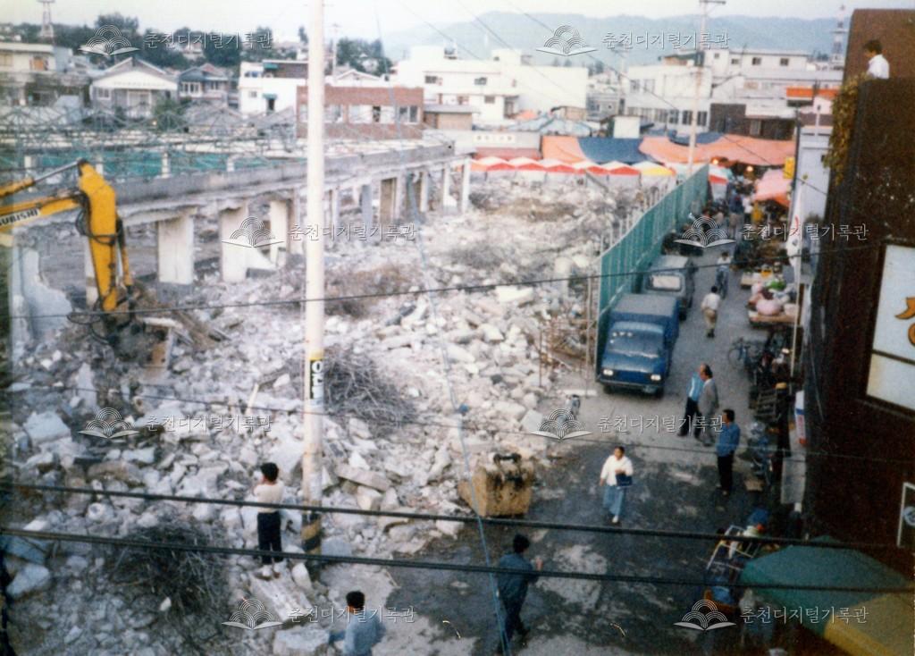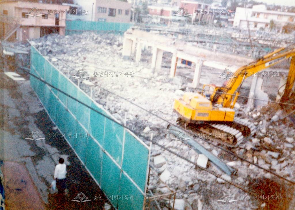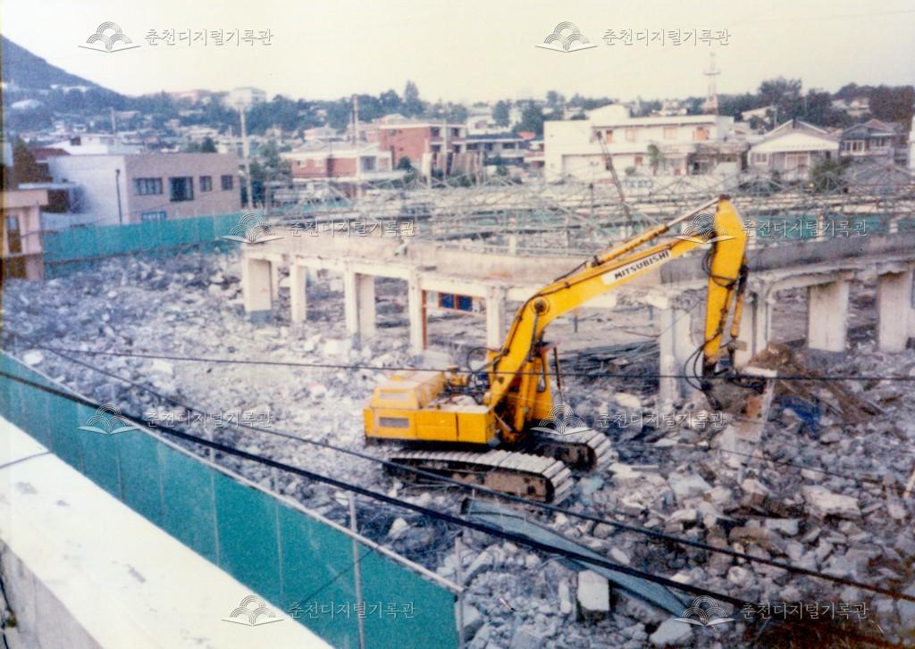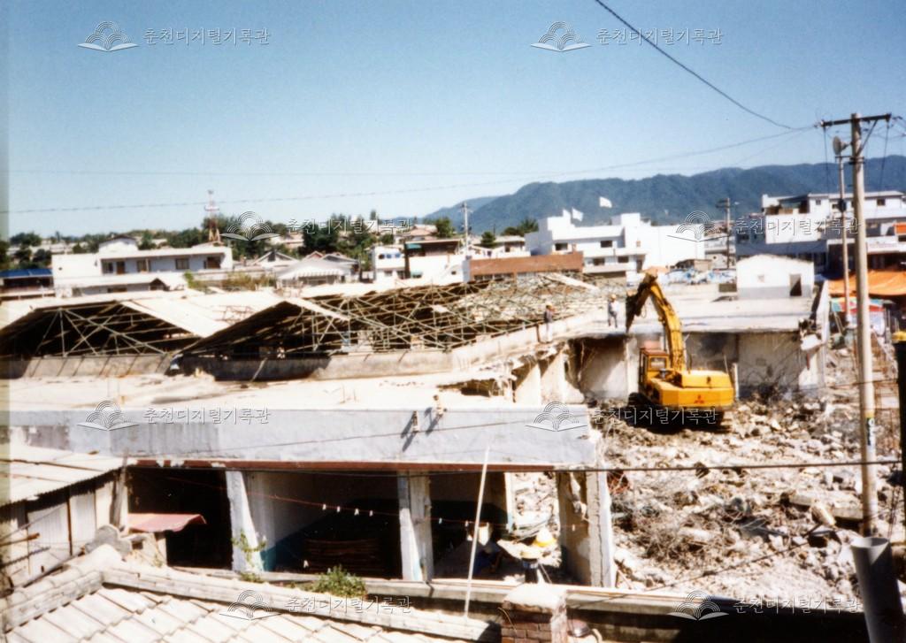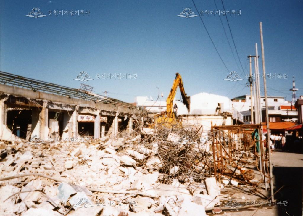 동부시장 건설 현장으로, 기존 건물을 철거하고 있다.