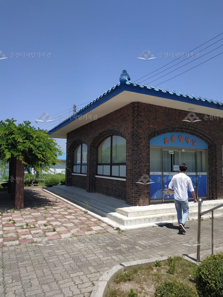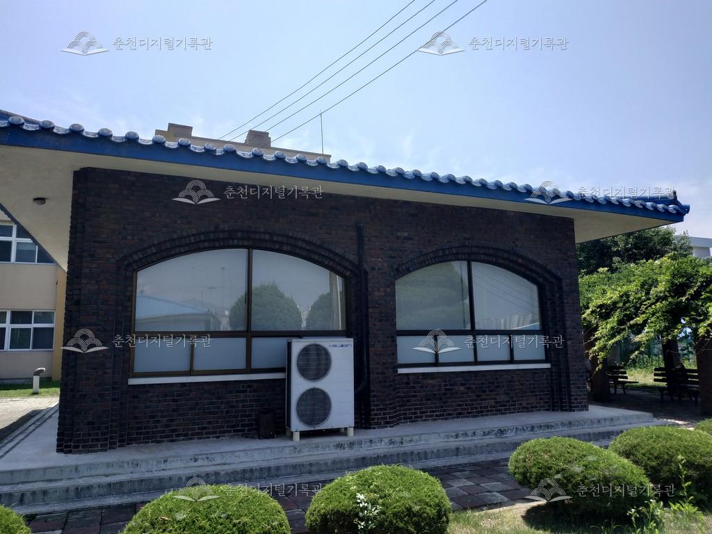 구 강원도 학생과학관, 강원도 과학교육원, 춘천교육지원청 창의교육지원센터이다. 창의교육지원센터 로봇발명실 모습이다. 파란색 기와와 적벽돌 건물이며 옆에는 등나무 그늘 쉼터가 있다.