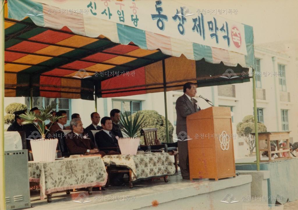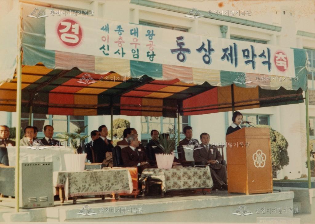 1979년 근화국민학교(현재 근화초등학교)에서 동상제막식을 진행하였다. 세종대왕, 이충무공, 신사임당 동상이 보인다.