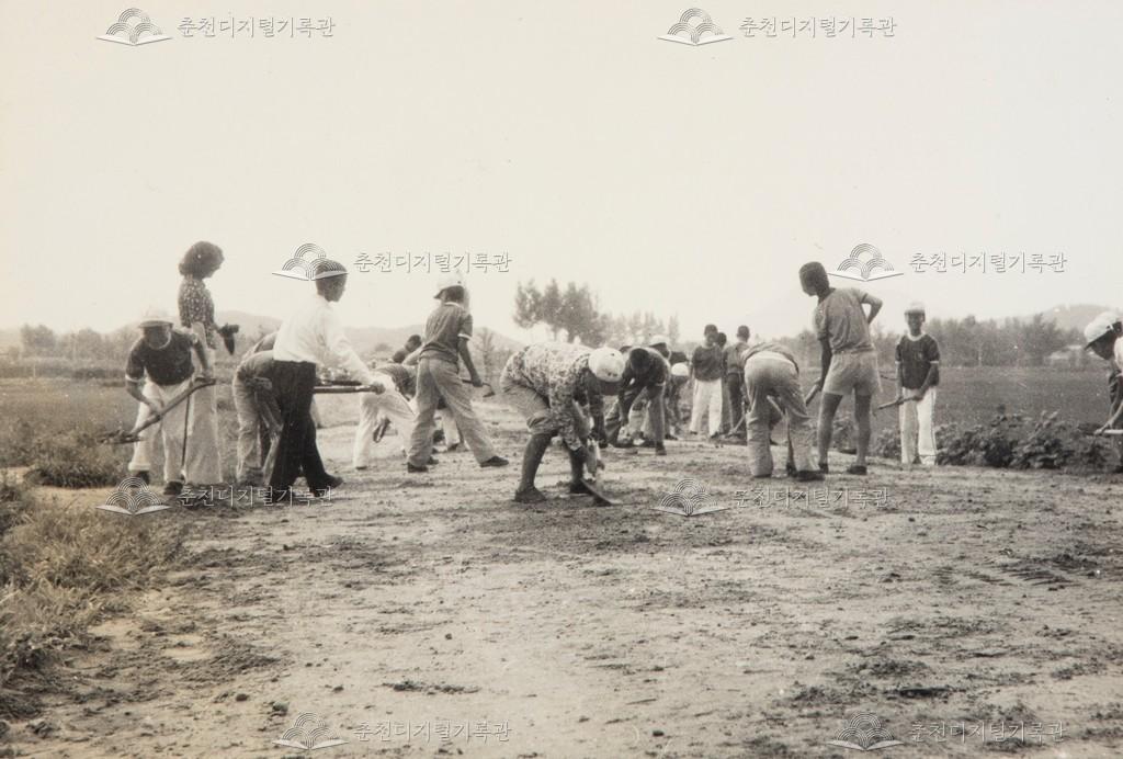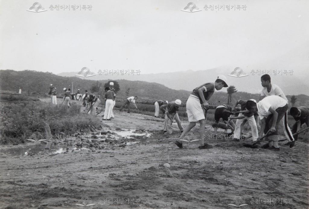 하계 근로 봉사활동 등록번호 00005811 생산일자 미상 생산지역 춘천시 신북읍 생산자 춘성중학교 수집처 춘성중학교 소장자 춘성중학교 내용 춘성중학교의 하계 근로 봉사활동 모습이다. 각 학급별로 도로를 보수하고 있다. 사용안내 비상업적 이용만 가능|©춘천디지털기록관 상업적 사용·수정·재배포는 저작권자 동의 필요 다운로드 목록보기