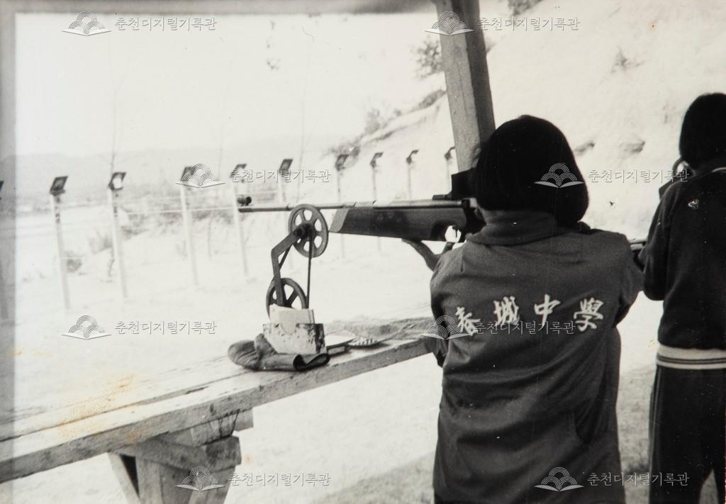 춘성중학교 1인 1운동(사격) 등록번호 00005832 생산일자 미상 생산지역 춘천시 신북읍 생산자 춘성중학교 수집처 춘성중학교 소장자 춘성중학교 내용 춘성중학교 사격부 모습이다. 춘성중학교는 1인 1운동을 지정하였던 것으로 보인다. 사용안내 비상업적 이용만 가능|©춘천디지털기록관 상업적 사용·수정·재배포는 저작권자 동의 필요 다운로드 목록보기