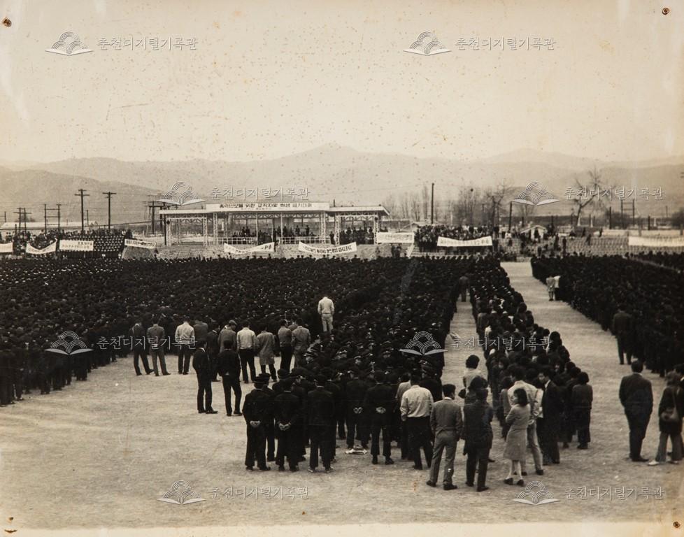 춘천고등학교에서 총력안보를 위한 교직자 및 학생 궐기대회를 진행하고 있다.