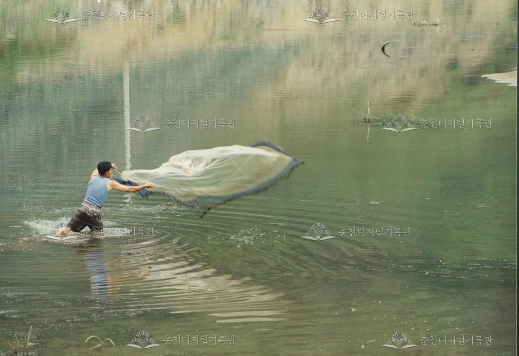 팔미천 투망질 사진 등록번호 00000660 생산일자 1994 생산지역 춘천시 신동면 생산자 오일주 수집처 오일주 소장자 춘천학연구소 내용 1994년에 촬영한 투망질 사진이다. 사진의 위치는 신동면 팔미천이다. 사용안내 비상업적 이용만 가능|©춘천디지털기록관 상업적 사용·수정·재배포는 저작권자 동의 필요 다운로드 목록보기