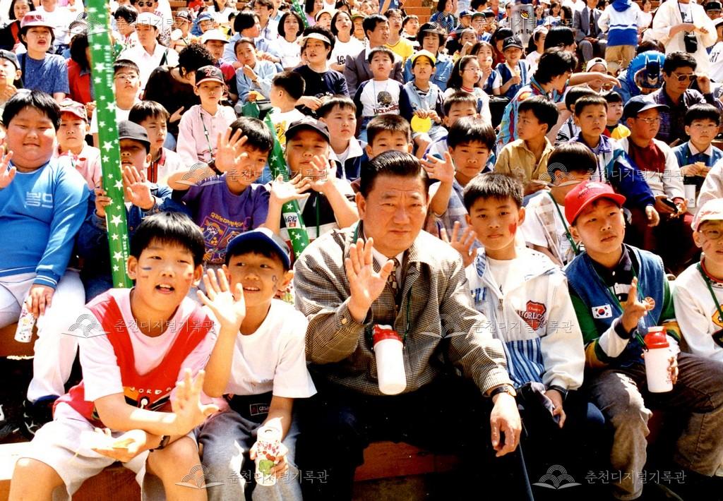 춘천시어린이회관 어린이날 행사 사진 등록번호 00000669 생산일자 미상 생산지역 춘천시 강남동 삼천동 생산자 오일주 수집처 오일주 소장자 춘천학연구소 내용 삼천동 춘천시어린이회관(현재 KT&G 상상마당 춘천 아트센터)에서 열린 어린이날 행사 사진이다. 15대 국회의원인 한승수(첫 번째 사진)와 류종수(두 번째 사진)가 어린이들과 함께 사진을 찍고 있다. 자세히 보기 닫기 사용안내 비상업적 이용만 가능|©춘천디지털기록관 상업적 사용·수정·재배포는 저작권자 동의 필요 다운로드 목록보기