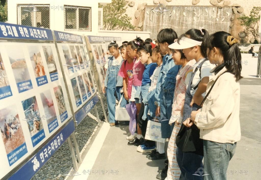 소양강댐 견학 사진 등록번호 00000674 생산일자 1995 생산지역 춘천시 북산면 청평리 생산자 오일주 수집처 오일주 소장자 춘천학연구소 내용 1995년에 촬영한 소양강댐 견학 사진이다. 사진전시회를 보는 초등학생들과 소양강댐 정상의 분수대 모습이 보인다. 사용안내 비상업적 이용만 가능|©춘천디지털기록관 상업적 사용·수정·재배포는 저작권자 동의 필요 다운로드 목록보기