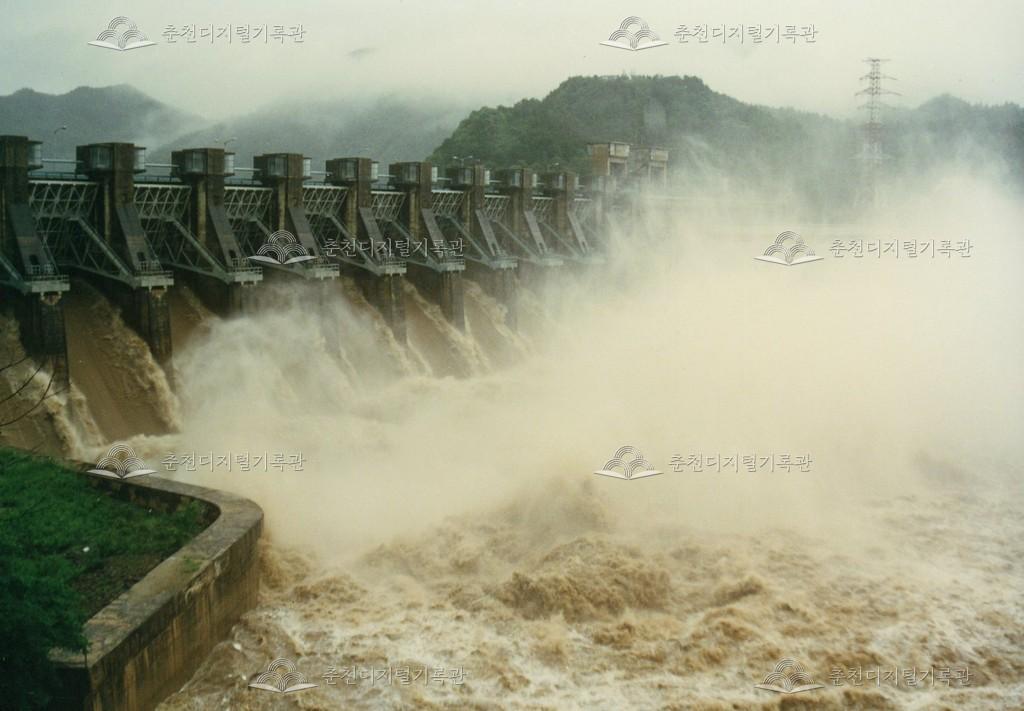 춘천댐 방류 사진 등록번호 00000722 생산일자 1995.08 생산지역 춘천시 서면 생산자 오일주 수집처 오일주 소장자 춘천학연구소 내용 1995년에 촬영한 춘천댐 방류 사진이다. 1995년 8월 말 한강 수계에 사흘 간 평균 300mm가 넘는 폭우가 쏱아져 홍수조절 능력이 있는 소양강댐을 비롯하여 춘천댐, 의암댐 등이 모두 수문을 열고 방류하였다. 자세히 보기 닫기 사용안내 비상업적 이용만 가능|©춘천디지털기록관 상업적 사용·수정·재배포는 저작권자 동의 필요 다운로드 목록보기