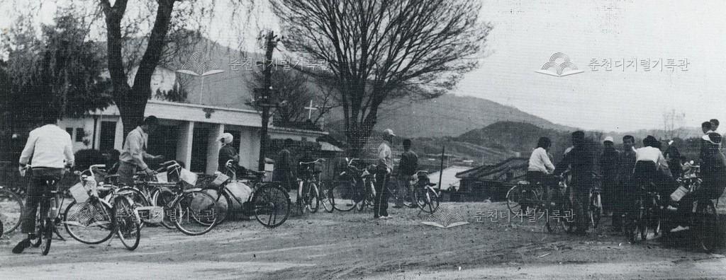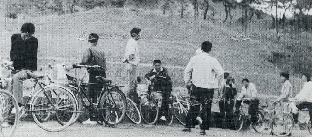 춘천교육대학 자전거 타기 등록번호 00000740 생산일자 1975 생산지역 춘천시 생산자 춘천교육대학 수집처 오일주 소장자 오일주 내용 1970년대 춘천교육대학(현재 춘천교육대학교)학생들이 자전거를 타는 모습이다. [사진 발췌] 춘천교육대학 제12회 졸업앨범 사진 발췌 자세히 보기 닫기 사용안내 비상업적 이용만 가능|©춘천디지털기록관 상업적 사용·수정·재배포는 저작권자 동의 필요 다운로드 목록보기