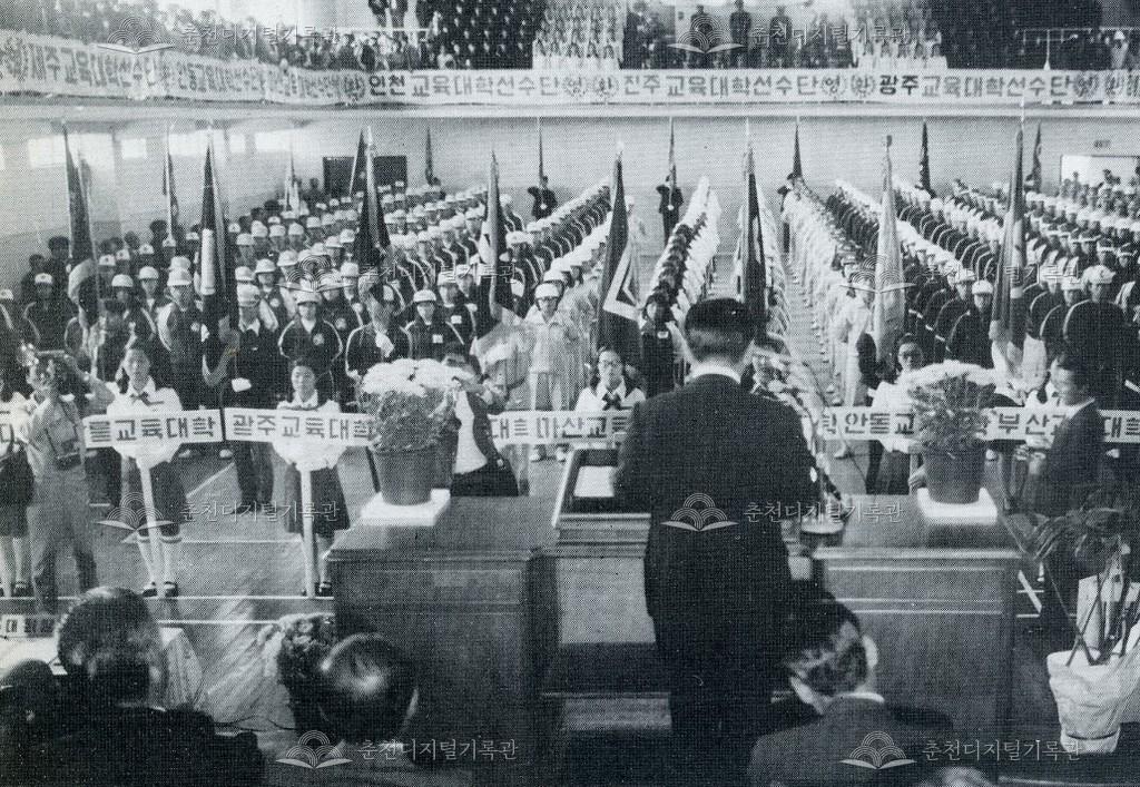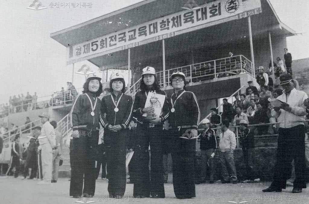 제5회 전국교육대학 체육대회 사진 등록번호 00000743 생산일자 1975 생산지역 미상 생산자 춘천교육대학 수집처 오일주 소장자 오일주 내용 제5회 전국교육대학 체육대회의 사진이다. [사진 발췌] 춘천교육대학 제12회 졸업앨범 사진 발췌 사용안내 비상업적 이용만 가능|©춘천디지털기록관 상업적 사용·수정·재배포는 저작권자 동의 필요 다운로드 목록보기