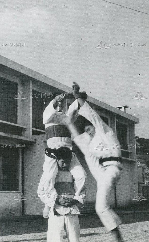 춘천교육대학 태권도부 사진 등록번호 00000749 생산일자 1975 생산지역 춘천시 생산자 춘천교육대학 수집처 오일주 소장자 오일주 내용 1970년대 춘천교육대학(현재 춘천교육대학교)의 태권도부 사진이다. [사진 발췌] 춘천교육대학 제12회 졸업앨범 사진 발췌 사용안내 비상업적 이용만 가능|©춘천디지털기록관 상업적 사용·수정·재배포는 저작권자 동의 필요 다운로드 목록보기