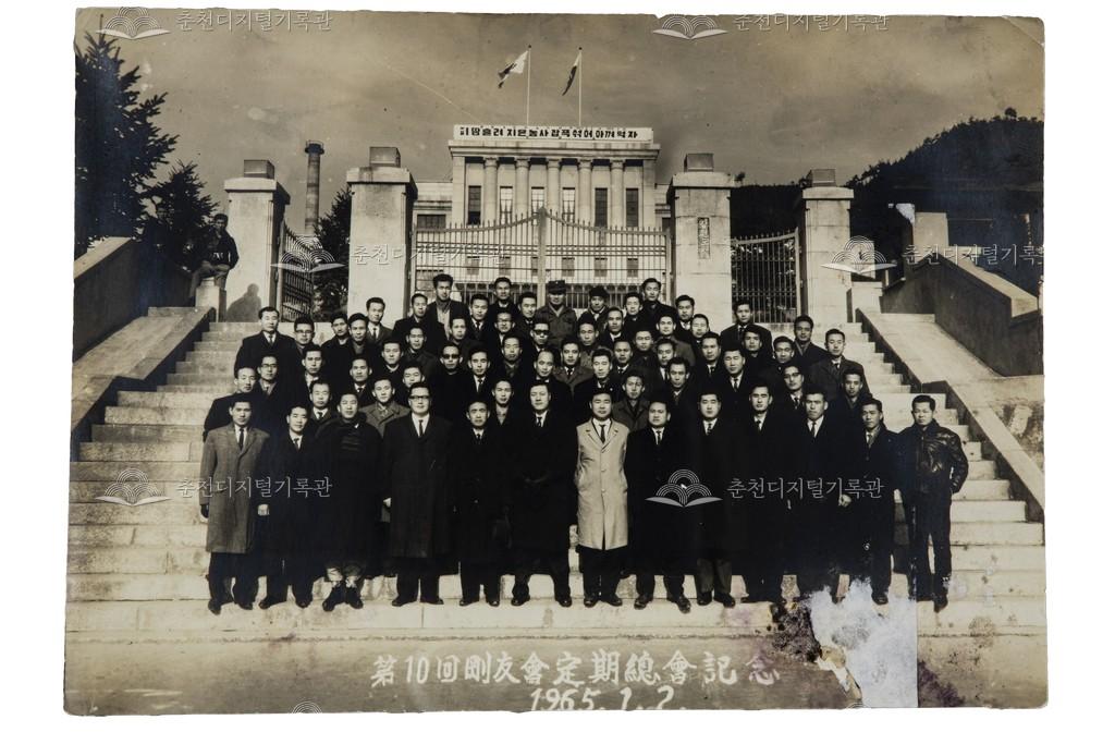 강우회 제10회 정기총회 기념사진 등록번호 00000756 생산일자 1965.01.02 생산지역 춘천시 소양동 봉의동 생산자 강우회 수집처 지희준 소장자 춘천학연구소 내용 강원도 출신 재경 공위공직자 모임인 강우회(剛友會)의 기념사진이다. 1965년 강원도청(현재 강원특별자치도청) 앞에서 촬영했다. 자세히 보기 닫기 사용안내 비상업적 이용만 가능|©춘천디지털기록관 상업적 사용·수정·재배포는 저작권자 동의 필요 다운로드 목록보기