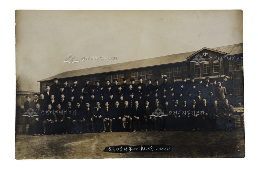 춘천중학교 제4회 졸업 기념사진 등록번호 00000757 생산일자 1955.03.21 생산지역 춘천시 약사명동 중앙로3가 생산자 춘천중학교 수집처 지희준 소장자 춘천학연구소 내용 춘천중학교 제4회 졸업 기념사진이다. 2층 목조 건물로 세워진 옛 교사(校舍)를 볼 수 있다. 사용안내 비상업적 이용만 가능|©춘천디지털기록관 상업적 사용·수정·재배포는 저작권자 동의 필요 다운로드 목록보기